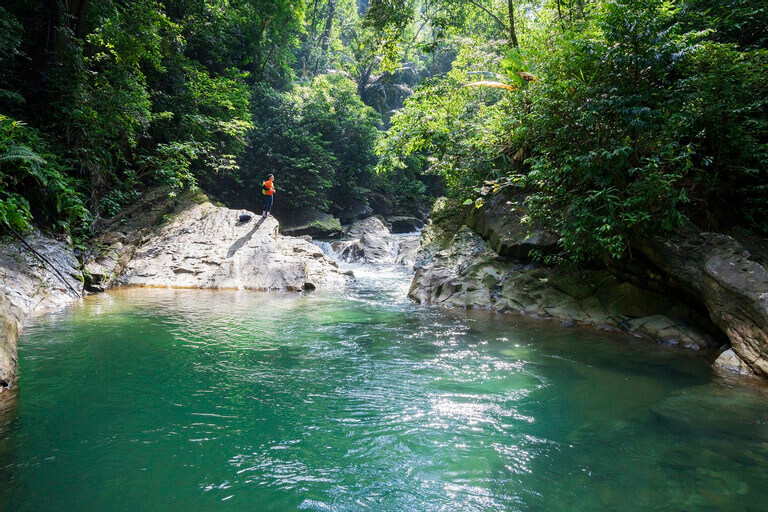 Mooc Stream은 Dong Hoi시에서 약 60km 떨어진 Phong Nha Ke Bang 국립 공원에 위치하고 있습니다. 여기에 가려면 호치민 트레일을 따라갈 수 있습니다. 하천은 삼각주를 향해 콘 강으로 흘러 들어갑니다. Khe Gat 교차로에서 서쪽으로 방향을 틀어 Mooc 스트림까지 약 5km 이동합니다. 하천은 광대한 녹색 숲으로 덮여 있으며, 기후는 시원하고 공기 습도가 높습니다. 이곳의 여름 여행은 매우 적합합니다. 거대한 천연 에어컨에 길을 잃은 것 같은 느낌이 들 것입니다. 꽝빈의 묵천(Mooc Stream)은 폭이 약 80~90㎡에 달하는 큰 호수에서 발원해 하류에서 큰 강으로 흘러든다. 이곳에는 험준한 바위 해변이 많아 흥미로운 풍경을 만들어냅니다. 시냇물을 따라 나무 그늘이 물 위의 우산처럼 시냇물 한가운데로 펼쳐집니다. 잘 자라는 나무는 물과 습도를 유지하는 데 도움을 주어 공기를 시원하고 신선하게 만듭니다. 묵봄은 깊은 숲속의 야생적인 자연경관 속에 나타나 관광객들은 눈앞의 아름다운 풍경에 압도되는 듯하다. 시냇물과 나뭇가지, 푸른 풀 하나하나에 생명이 가득하고, 자연의 따끔거리는 소리와 물 흐르는 소리가 어우러져 생동감 넘치는 하모니를 이룬다. S자 모양의 이 땅에는 사람과 자연이 이렇게도 가깝게 조화를 이룰 수 있는 곳이 있습니다. 산과 숲이 있는 공간에 몸을 담그고 삶의 향기를 듣고, 보고, 느낄 수 있도록 모든 감각을 확장하여 휴식의 느낌을 누릴 수 있습니다. 이곳에 오면 다양한 엔터테인먼트 활동에 참여할 수도 있고, 플레이어의 유연성과 손재주가 필요한 스릴 넘치는 게임도 많이 있습니다. 카약, 행잉 브리지, 집라인... 카약에 앉아 유속이 빠른 구간까지 물의 흐름을 따라 노를 능숙하게 조종하는 플레이어는 강한 물살을 헤쳐나가도록 노를 유지해야 합니다. Nuoc Mooc 봄 카약 티켓 가격은 세션당 약 50,000 VND입니다. 현수교는 고소공포증이 없는 분들을 위한 곳으로, 물에 빠지고 싶지 않다면 현수교의 나무 판자 하나하나를 조심스럽게 밟아야 합니다. 이 엔터테인먼트에 참여하려면 조심스러울 뿐만 아니라 매우 능숙해야 합니다. 이곳에서는 마늘을 곁들인 야생 야채 볶음, 장어 구이, 닭고기 구이, 죽 수프 등 현지 재료로 만든 소박한 요리가 많이 제공됩니다. 초가집에 앉아 요리를 즐기는 기분은 아주 새로운 느낌을 줍니다. 여름에는 묵천이 시원한 샘물과 신선한 풍경을 자랑하는 정말 멋진 생태지역이 됩니다. 주말이나 휴일에 친구들과 함께 소풍을 가는 것도 좋은 생각이 될 것입니다. 야생의 자연은 여러분에게 기억에 남는 사진을 선사할 것입니다. 관광지는 아주 새롭기 때문에 모든 것이 "손상되지 않은" 것처럼 보이며 외부 생활과 분리된 것처럼 보입니다. 또한 Chay 강, Dark row 등 Mooc 스트림 근처의 장소를 방문할 수 있습니다. Dark Cave에는 에어컨을 생성하면서 흐르는 깊은 지하 흐름이 있습니다. 내부에는 다양한 모양의 종유석과 종유석이 많아 빛이 거의 없고 완전한 어둠이 깔려 있는데, 손전등을 끄면 모든 것이 어둠에 삼켜진 듯한 느낌이 들고 눈은 숨 막힐 듯한 암흑으로 가득 차 있다.