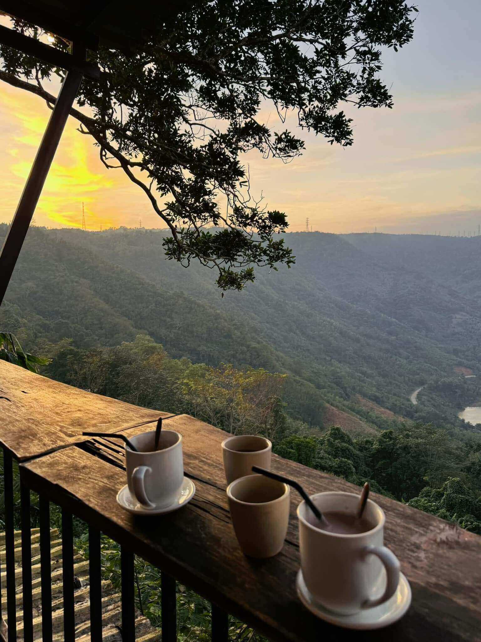 홈스테이에서 휴식을 취한 후 방문객들은 최고의 카페 중 한 곳으로 이동하여 아름다운 일몰과 일출을 감상합니다. 호미커피에서는 멀리 하늘이 탁 트이고,수력발전댐에서 방류되는 물도 볼 수 있다. 일몰을 감상한 후 관광객들은 매콤하고 신맛이 나는 맛있는 라오스 음식을 먹기 위해 이동합니다.