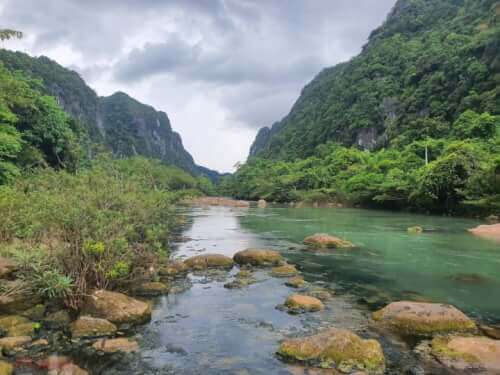 현지 언어로 "mooc"은 성장을 의미하며 아래에서 위로 성장하려는 의도입니다. Mooc 개울은 땅에서 솟아오르는 물기둥으로 Chay 강과 합류하는 개울을 형성한다고 합니다. 지하에서 분출하는 물의 양에 근거하여 지질학자들은 이 개울이 암벽 깊숙한 곳의 거대한 동굴 시스템의 근원이라고 믿고 있습니다.