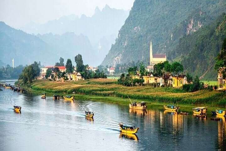 방문객들은 보트를 타고 손강(Son River) 기슭을 따라 장엄한 산의 경치를 감상할 수 있는 기회를 갖게 됩니다. 그 후,100년이 넘는 역사를 지닌 Gia Hung 고대 교회를 방문하고,강에서 가두리 양식을 체험하고,모자 만들기 마을을 방문하고,라이스페이퍼 만들기,와인 만들기 등을 할 수 있습니다.