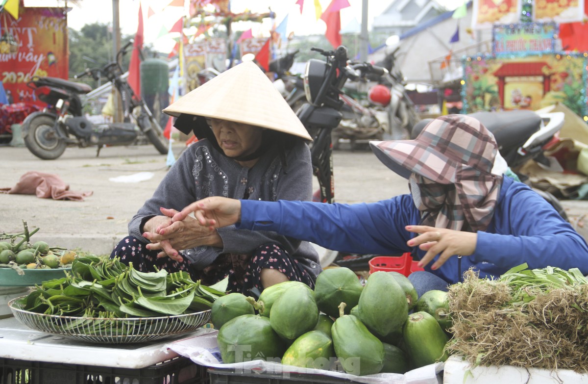 오전 5시에 바둑 모임에 참석한 Nguyen Thi Tong 씨(64세,Tuy Phuoc 현 Phuoc Son 면)는 집에서 재배한 농산물,물 시금치 몇 묶음,무화과,빈랑나무,아레카 너트... 그녀 통은 자신이 사업가는 아니지만 아침에 돈을 교환하고 새해의 시작에 행운을 기원하고 싶다고 말했습니다. (사진: Truong Dinh)