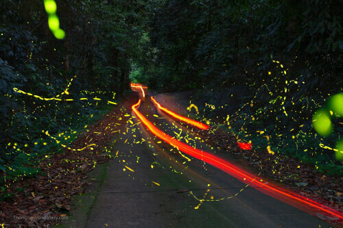 밤에는 수백만 마리의 반딧불이가 별처럼 빛나며 숲 전체를 비추며 모든 방문객이 즐기는 흥미로운 자연 현상입니다. 사진: Nguyen Thong.
