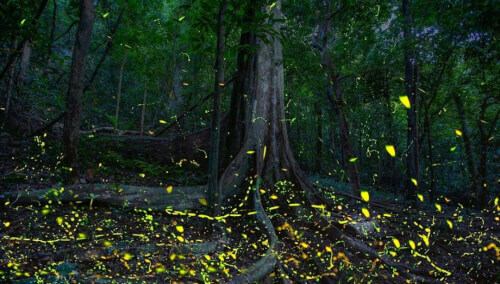 밤이 되면 숲 전체가 색색으로 반짝이는 "별이 빛나는 하늘"과 같다... 동화 속에나 나올 법한 장면...