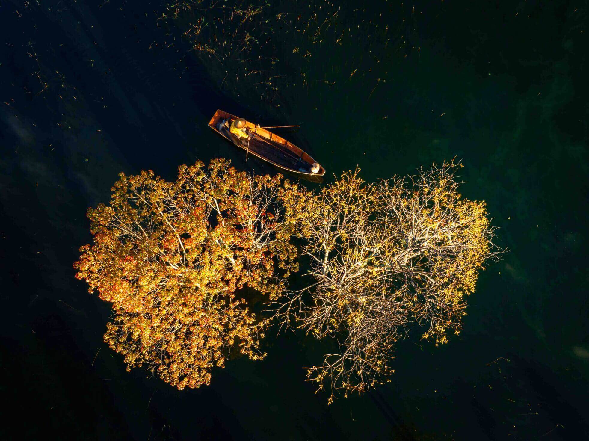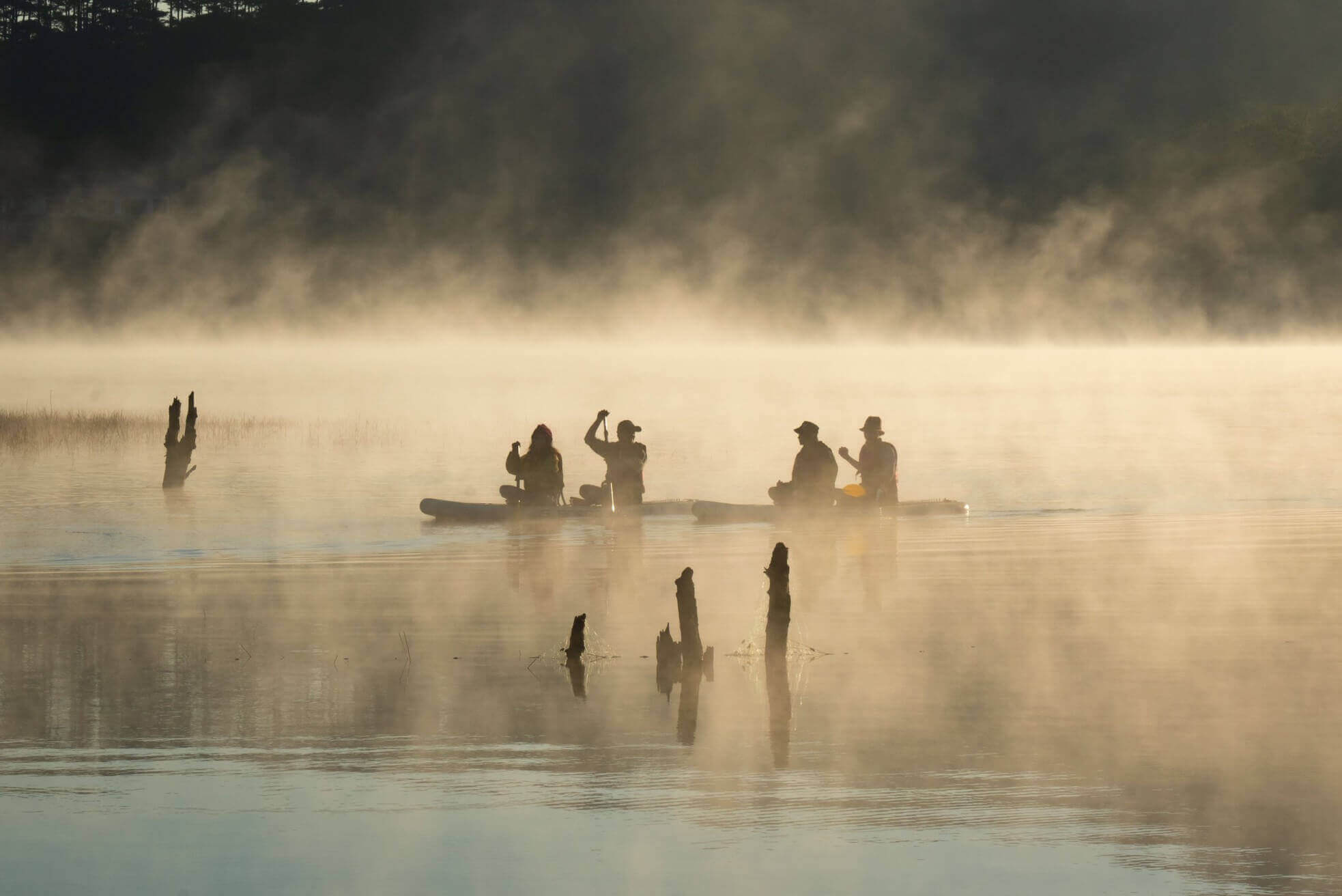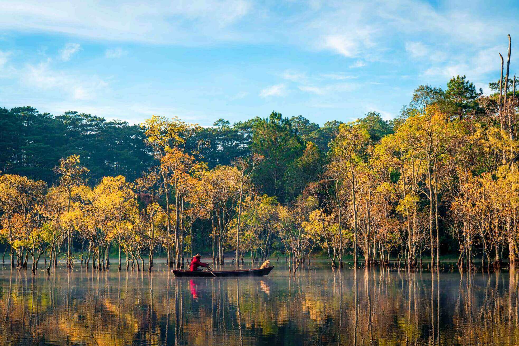 부이반하이 씨의 설명에 따르면,늙은 어부의 나무배가 안개 속을 유유히 미끄러지듯 나아가는 모습이 티아강의 공간을 더욱 환상적으로 만든다고 합니다. 사진: 부이반하이.
