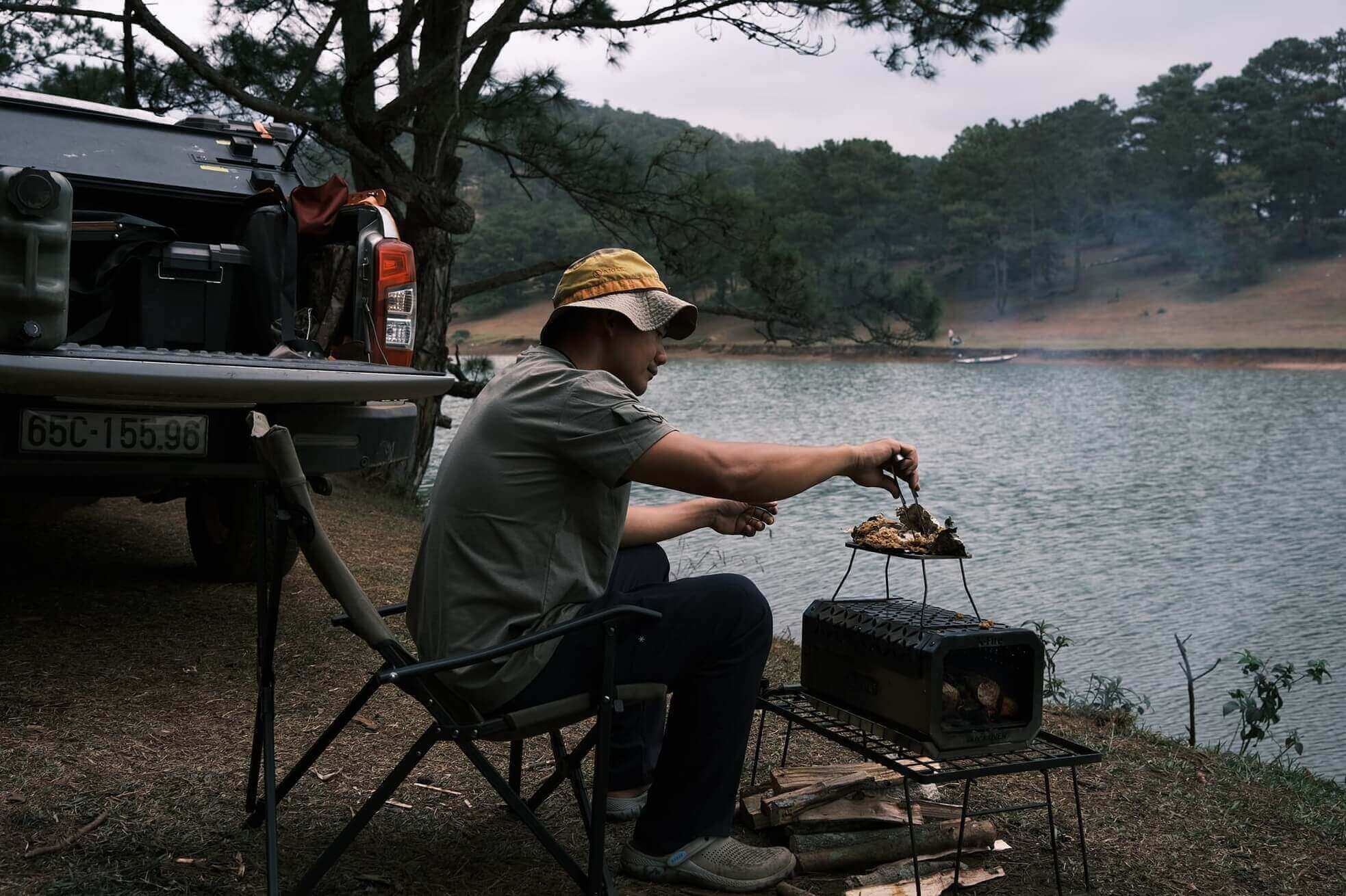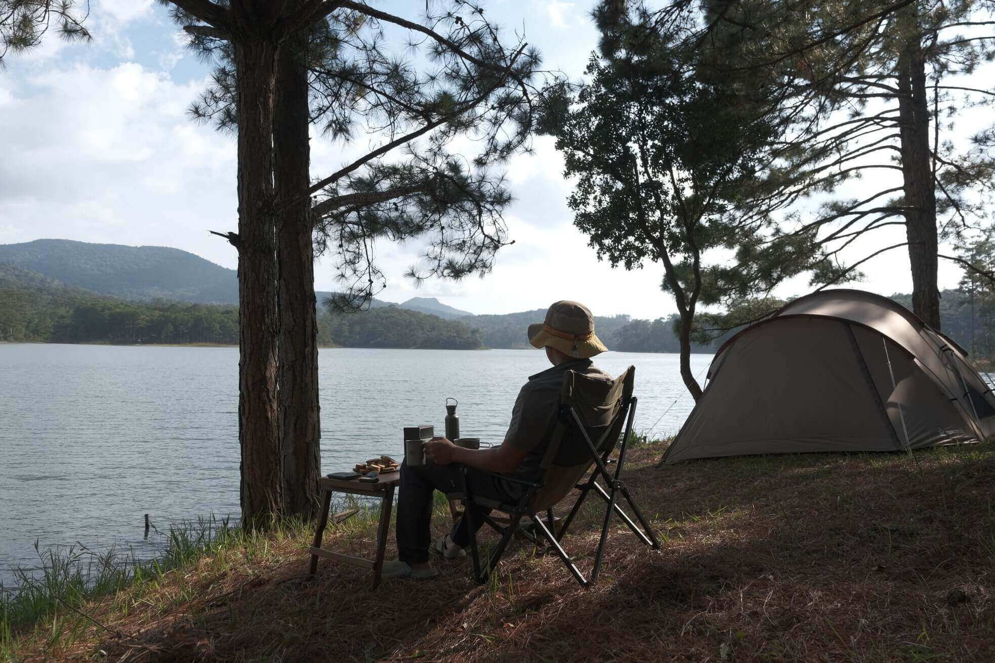 10년 넘게 깨끗한 곳에서 캠핑을 해 온 Nhut 씨는 Tuyen Lam 호수에서 일출을 맞이하며 밤을 보내고 책을 읽는 경험은 항상 흥미로운 활동이며 놓칠 수 없다고 말했습니다. 사진: Le Quang Nhut.