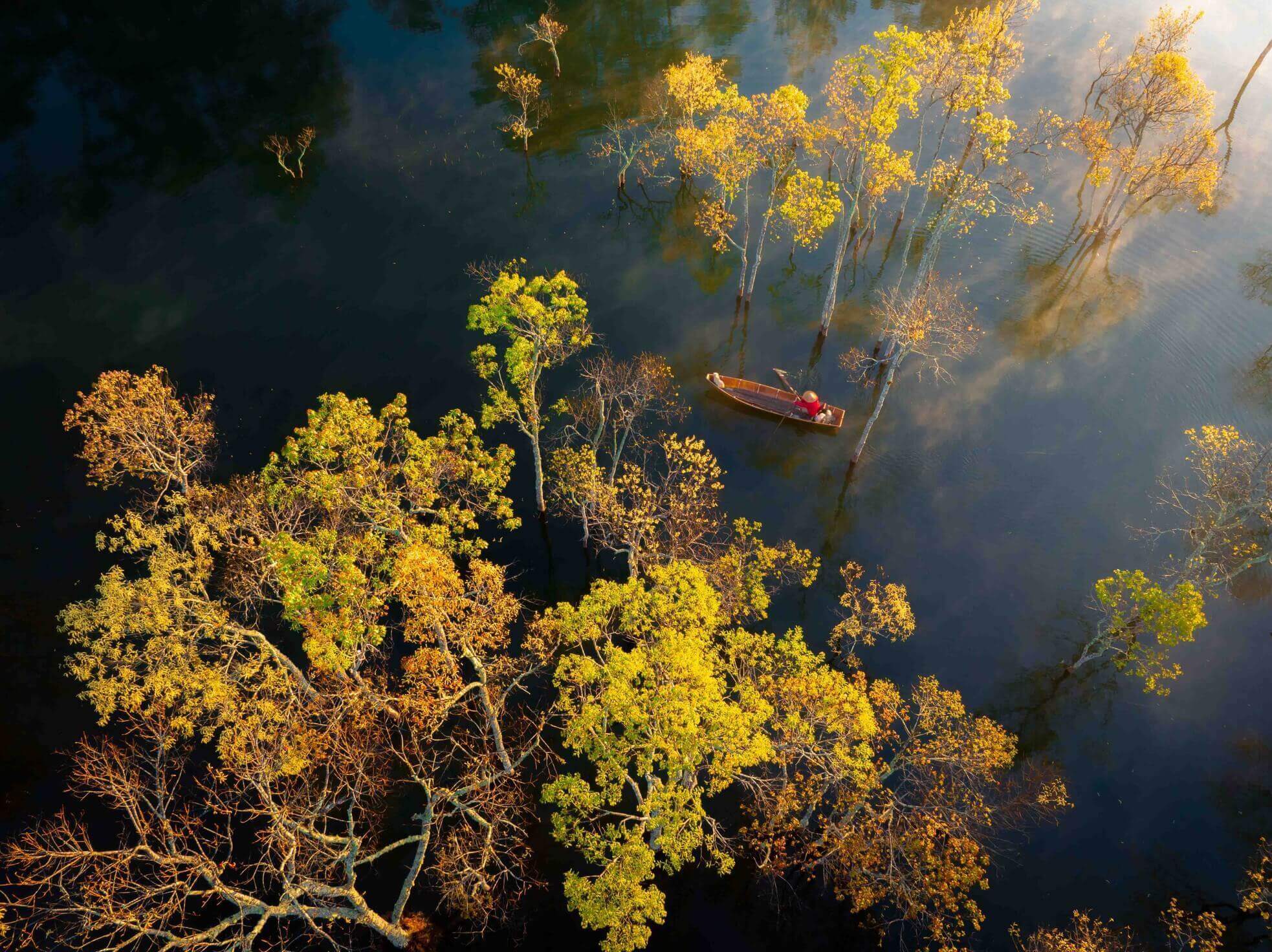 "이른 봄에는 물나무에 새잎이 나면서 녹색,노란색,빨간색으로 변하는 환상적인 색상을 연출합니다. 특히 이른 아침에는 호수 표면에 작은 안개가 떠다니고,호수 표면을 감싸는 부드러운 아침 햇살을 즐길 수 있습니다. 나뭇잎이 밝게 빛납니다. 풍경 사진가들에게는 지금이 가장 아름답고 기대되는 시간입니다." 하이 씨는 시냇가의 아름다움에 대해 이야기할 때 항상 매우 신이 납니다. 티아. 사진: 부이반하이.