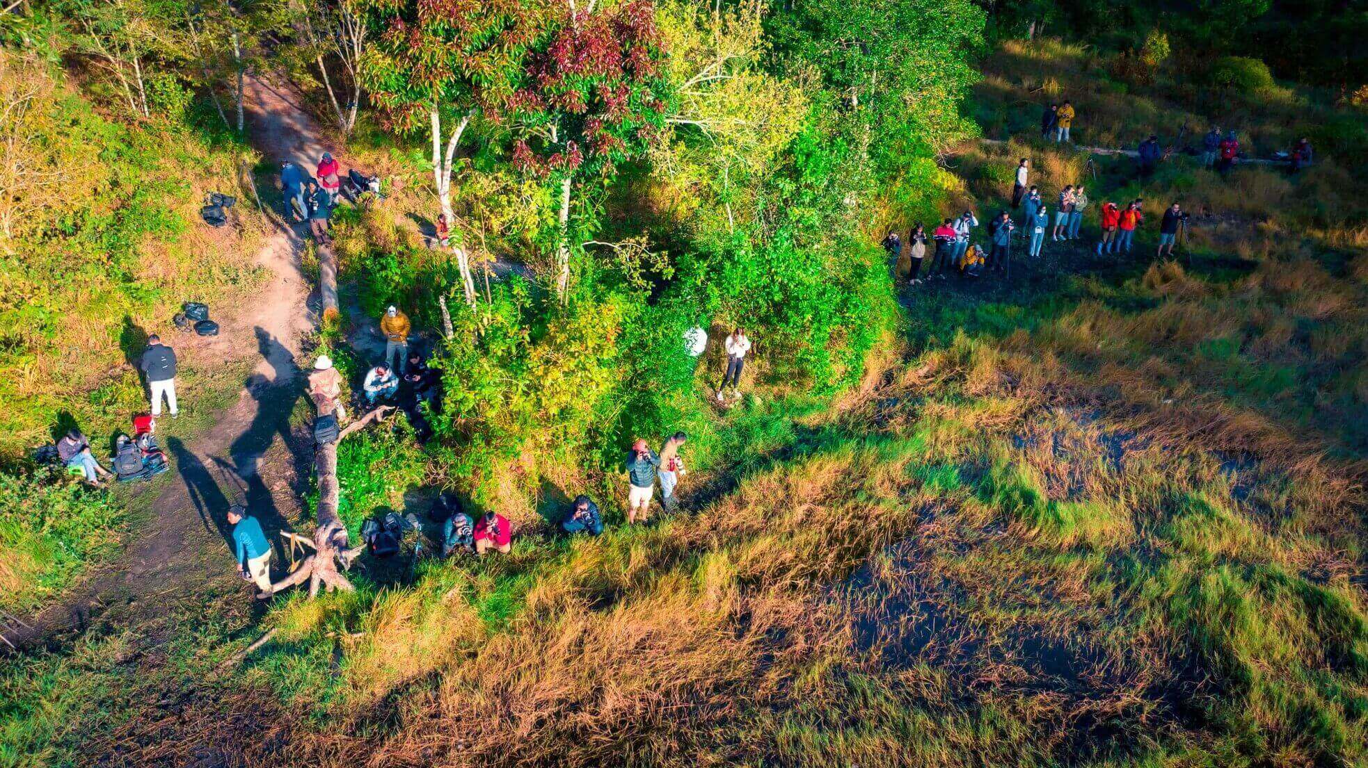 사진작가는 나무가 나뭇잎을 바꾸는 시기가 2주 정도에 매우 빠르게 진행되기 때문에 이번 시즌에는 티아 하천이 매우 혼잡하다고 말했습니다. 주말에는 달랏뿐만 아니라 하노이,호치민시 등 각지에서 50여명의 사진작가들이 모였다. 사진: 부이반하이.