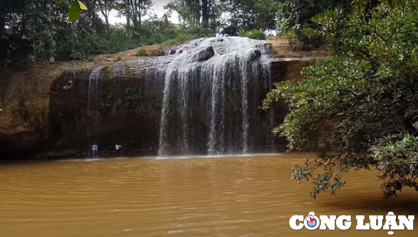 고개의 역사에 대한 이야기를 마치자마자 운전자는 폭포 앞에 멈춰 섰고,Tien 씨는 이것이 그가 위에서 언급한 유명한 Prenn 폭포임을 우리에게 보여주었습니다. 폭포는 위에서 아래로 물줄기가 흘러내리며,그 양이 많아 광활한 산과 숲 사이에 부드러운 비단 시트 같은 풍경을 연출합니다.