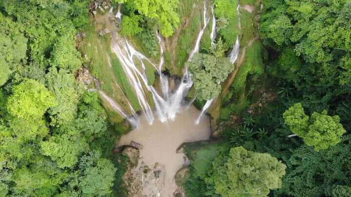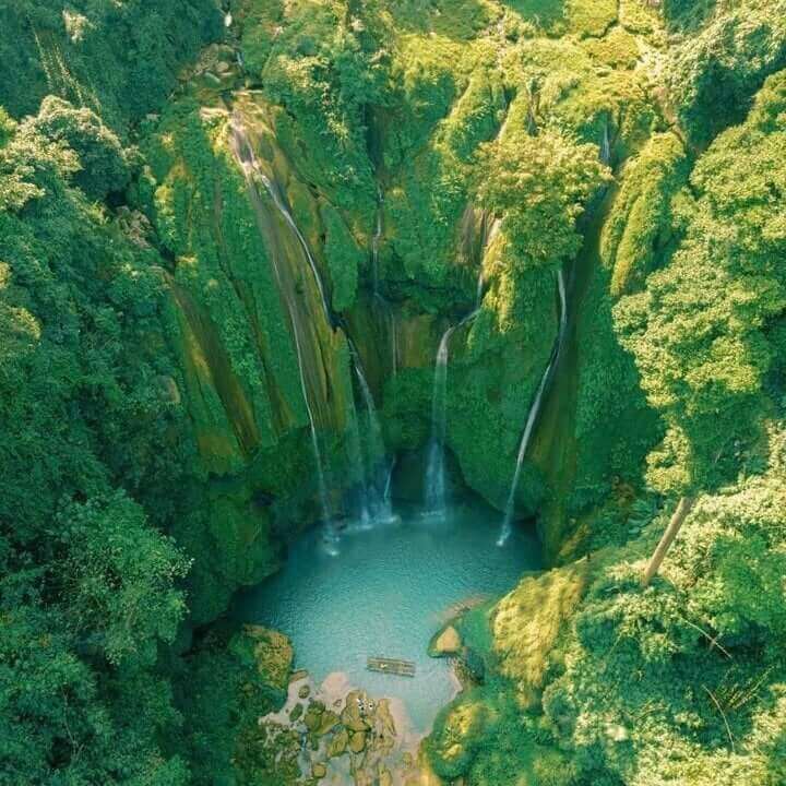 폭포는 3층으로 구성되어 있으며,바위에서 자라는 녹색 이끼와 양치류가 있는 초목으로 둘러싸여 있습니다. 또한 숲과 시원한 푸른 나무들로 둘러싸여 있기 때문에 이곳의 공간은 언제나 시원하고 상쾌하여 방문객들에게 매우 편안하고 쾌적한 느낌을 줍니다.