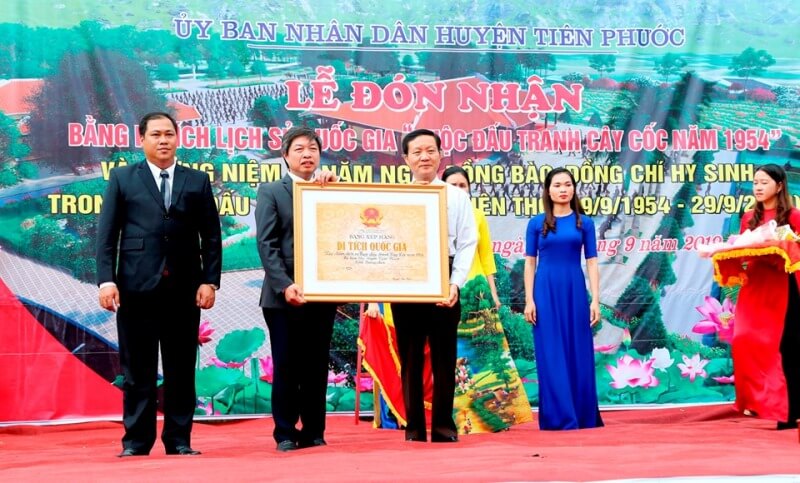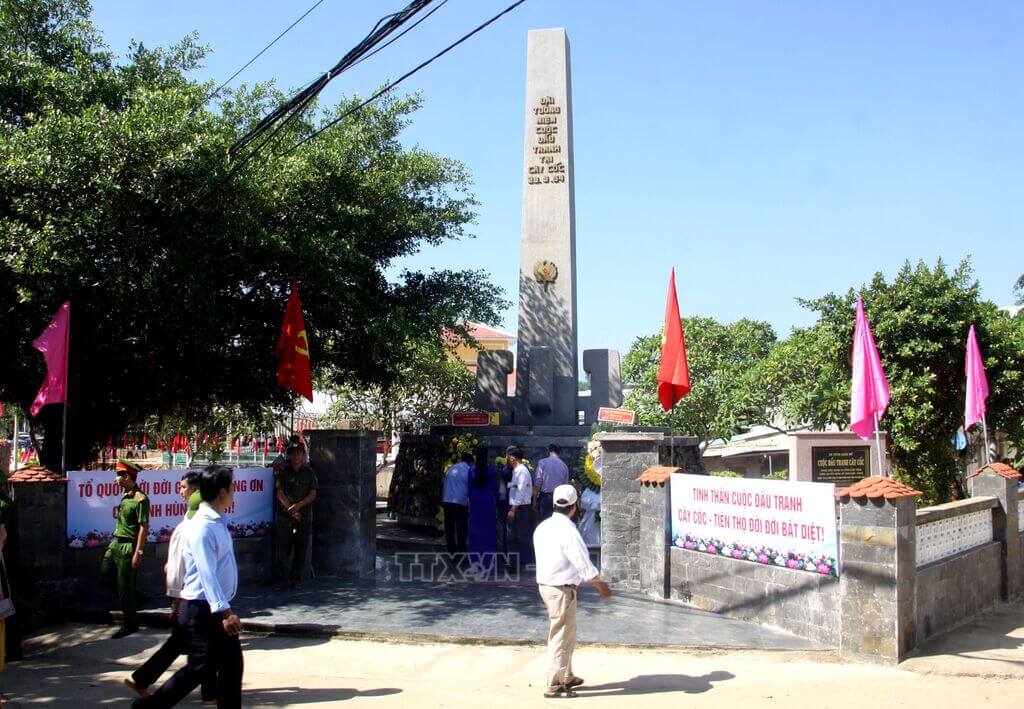 "1954 년 Coc Coc Coca Struggle의 장소"는 Quang Nam에서 제네바 협정의 이행을 요구하는 우리 동포들의 투쟁에 관한 역사 책에 기록 된 중요한 역사적 사건을 표시하는 곳입니다. 9 월 27 일 아침, Quang Nam Province의 Tien Phuoc 지역의 Tien Tho Commune에서 "1954 년 Coc Coc Struggle을위한 장소"와 함께 Coc Coc 투쟁 65 주년을 기념하는 국가 역사 기념물을받는 행사 (2019 년 9 월 29 일 -9 월 29 일)를 기념합니다. 유물 "1954 년 나무 투쟁 장소"는 Quang Nam에서 제네바 협정의 이행을 요구하는 우리 동포들의 투쟁에 관한 역사 책에 기록 된 중요한 역사적 사건을 표시하는 곳입니다. 기록에 따르면, 1954 년 9 월 29 일 오전 9시에 Que Son, Tam Ky의 사람들은 Cay Coc Market (Tien Tho Commune, Tien Phuoc District)으로 갔다. 그들은 적들이 체포되어 사람들과 혁명 공무원들을 억압했다는 소식을 들었을 때, 그들은 Cay Coc Market 주변의 사람들이 투쟁에 가라고 요청했다. 같은 날 약 10 시까 지 하늘에 프랑스 군용 바지의 3 개의 구축함에 도착했을 때, 적은 억압하라는 명령을 내렸고, 601 대대의 병사들은 사람들에게 불을 끄고 330 명 이상의 동맹국과 군인들에게 가을을 일으켰습니다. "1954 년 컵의 투쟁을위한 장소"의 인정은 Quang Nam 지방의 관광과 역사적 문화를 연결하기위한 장소이기도하는 젊은 세대를위한 혁신적인 전통 교육 장소가 될뿐만 아니라 국가 역사적 기념물입니다. Quang Nam Province의 Tien Phuoc District의 전자 포털 공급원.