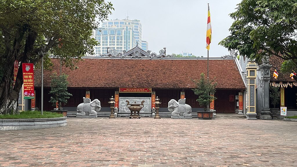 동난(Dong Nhan) 사원에는 19세기와 20세기 초의 귀중한 그릇, 수평 판, 평행 문장 등 귀중한 금도금 공물이 여전히 많이 남아 있습니다. Dong Nhan Temple에는 예배실 앞마당에 "Trung Vuong의 비극적인 이야기"라는 비석도 있습니다. 고대 동난 사원(다른 이름은 하이바쯩 사원)은 12 Huong Vien Street(하노이 하이바쯩구 동난구)에 위치해 있습니다. 이것은 Trung Trac 씨와 Trung Nhi 씨를 숭배하는 신성한 사원 중 하나입니다. 독특한 문화적, 역사적, 건축학적 가치를 지닌 동난사(Dong Nhan Temple)는 공동 주택, 탑과 함께 특별 국가 기념물(2020)로 지정된 유적 단지입니다. 두 여성은 Me Linh의 Phong Chau 출신입니다. 나는 Trung Trac이고 당신은 Trung Nhi입니다. 당시 한 왕조의 총독인 To Dinh은 Trung Trac 부인의 남편인 Thi Sach를 잔인하게 살해했습니다. 두 여인은 반란의 깃발을 들고 도딘의 군대를 추방하기 위해 각지의 사람들로부터 지지를 얻었고, 린남의 65개 성채를 점령하고 스스로 왕을 선포했습니다. 이후 한 왕조는 마비엔(Ma Vien) 장군을 보내 상황을 진압했지만 두 여성은 저항하지 못하고 캄케(Cam Khe) 땅으로 후퇴했고 마침내 트엉손(Thuong Son) 산으로 가서 자살했습니다. 또 다른 이론에 따르면 두 여성은 자살하기 위해 핫장강(Hat Giang River)에 뛰어들었고, 이후 홍강(Red River)에 떠다니는 두 개의 흰 바위로 변신하여 동냔(Dong Nhan) 부두까지 갔으며 종종 밤에 밝게 빛났다고 합니다. 마을 사람들은 그것을 보고 붉은 천을 가져다가 그녀의 동상을 가공하고 강을 따라 있는 Dong Nhan 해변에 그들을 숭배하기 위한 사원을 세웠습니다. 역사적 자료에 따르면 하이바쯩(Hai Ba Trung) 사원은 다이딘(Dai Dinh) 3대 시대인 리안똥(Ly Anh Tong) 왕의 통치 기간(1142년)에 동냔(Dong Nhan) 마을의 강둑 지역에 지어졌습니다. 나중에 이 땅이 침식되자 마을 사람들은 사찰을 흐엉비엔(Huong Vien) 마을(현재 위치)로 옮겼습니다. 사원은 유물 단지의 중심입니다. Vien Minh 탑은 Cao Son Dai Vuong 신, Thien Tu 왕, Do Ho Dai Vuong 신 및 강을 따라 사는 사람들을 도운 물의 신을 숭배하는 공동 주택입니다. 이 사찰은 4,000제곱미터 규모의 캠퍼스에 '외국인' 건축 양식을 따라 지어졌습니다. 문 앞에는 반원형 호수가 있다. 길을 지나면 4개의 기둥으로 이루어진 제사용 문이 있는 넓은 마당에 이른다. 왼쪽에는 거북이 등에 탄 커다란 비석이 있고, 오른쪽에는 2층 8층 공동주택이 있다. 안으로 들어가면 실제 엄니가 부착된 검은색으로 칠해진 두 마리의 나무 코끼리 조각상이 있는 7개의 방이 있는 제단 집이 있습니다. 이는 군대를 이끌고 전투에 임하는 두 여인의 코끼리를 상징하는 두 마리의 코끼리입니다. 제단 집은 향로로 하렘과 연결되어 있으며, 내부에는 제단 왕좌와 코끼리를 타고 적과 싸우는 하이바쯩의 모자이크가 배치되어 있습니다. 하렘에는 약 1m 높이의 돌 받침대 위에 하이바(Hai Ba) 동상이 있습니다. 단련된 점토로 만든 조각상, 앉은 자세. Trung Trac 여사는 노란색 셔츠를 입고, Trung Nhi 여사는 빨간 셔츠를 입고, 머리는 마녀 모자로 덮여 있고, 동상은 실물보다 크며, 군중을 소환하는 것처럼 두 손을 얼굴 앞으로 높이 치켜들고 있습니다. 양쪽에는 하이바(Hai Ba)의 반란을 따라 토딘(To Dinh)을 추방하고 국가의 불명예를 씻어내고 남편에게 복수하기 위해 봉기를 한 여성 장군들의 동상이 있습니다: 레찬 장군, 호아호앙, 티엔응아, 응우옌다오누옹, 풍티친(Phung Thi Chinh)과 팜티콘(Pham Thi. Con) 공주. 제단에는 왕좌와 코끼리를 타고 적과 싸우는 두 여인의 이미지를 묘사한 모자이크가 있습니다. 동난(Dong Nhan) 사원에는 19세기와 20세기 초의 귀중한 그릇, 수평 판, 평행 문장 등 귀중한 금도금 공물이 여전히 많이 남아 있습니다. Dong Nhan Temple에는 1840년 Vu Tong Phan 박사가 하이바를 "남부 국가에서 가장 맹렬한 존재"로 찬양하는 내용으로 작곡한 "Trung Vuong의 비극적인 이야기" 비석이 예배실 앞마당에 있습니다. ". 하이바(Hai Ba)에게 감사를 표하기 위해 이곳 사람들은 매년 2월 4일부터 7일까지 동넌(Dong Nhan) 사원 축제를 조직합니다. 6일은 하이바쯩이 코끼리를 타고 적과 싸우는 장면을 재현한 예술공연이 특징인 주요 축제이다. 축제는 민속놀이로 활기가 넘친다. 정확히 정오 12시에 사장 잔치를 거행하고 풍꽁(Phung Cong) 마을(흥옌성 반장현 풍꽁면), 하로이(Ha Loi) 마을을 포함해 하이바쯩(Hai Ba Trung)을 숭배하기 위해 함께 모인 4개 공동체 의회에서 예배를 드리는 의식이 있습니다. (Hung Yen 성 Me Linh 면), 하노이시 Me Linh 면) 및 Hat Mon 마을 (하노이시 Phuc Tho 현, Hat Mon 면). Dong Nhan 사원의 축제는 "물을 마실 때 그 근원을 기억하라"는 도덕 원칙을 보여주며 국가 영웅과 국가와 국민에 공헌한 사람들에게 경의를 표합니다. 하이바쯩(Hai Ba Trung)을 숭배하기 위해 사원이 건립된 곳은 많습니다: 핫 몬(푹토 지구), 풍꽁(흥옌), 메린(메린 지구) 등... 그리고 400개가 넘는 숭배 장소가 있습니다 하이바(Hai Ba) 장군들과 동냔(Dong Nhan) 사원은 여전히 가깝고 먼 곳에서 많은 관광객들이 찾는 곳입니다. 하노이시 문화체육부