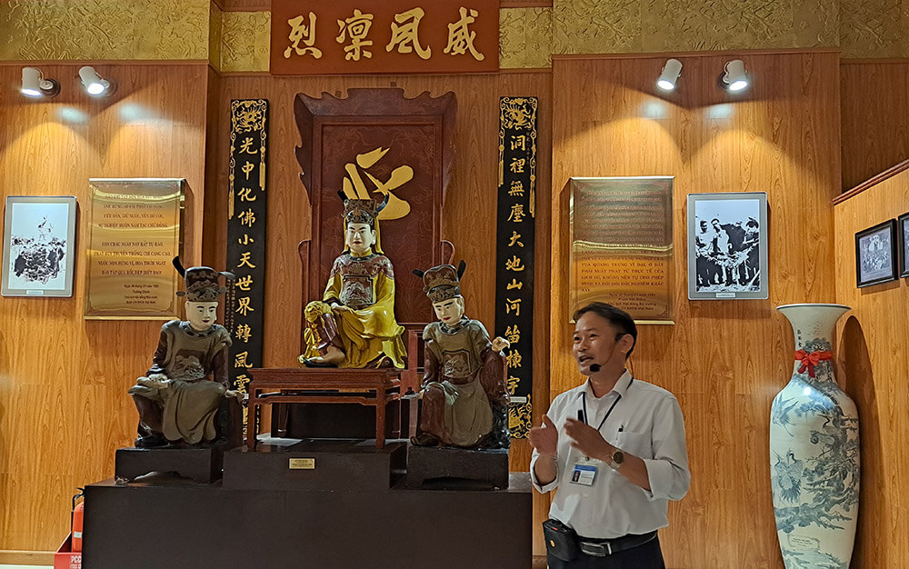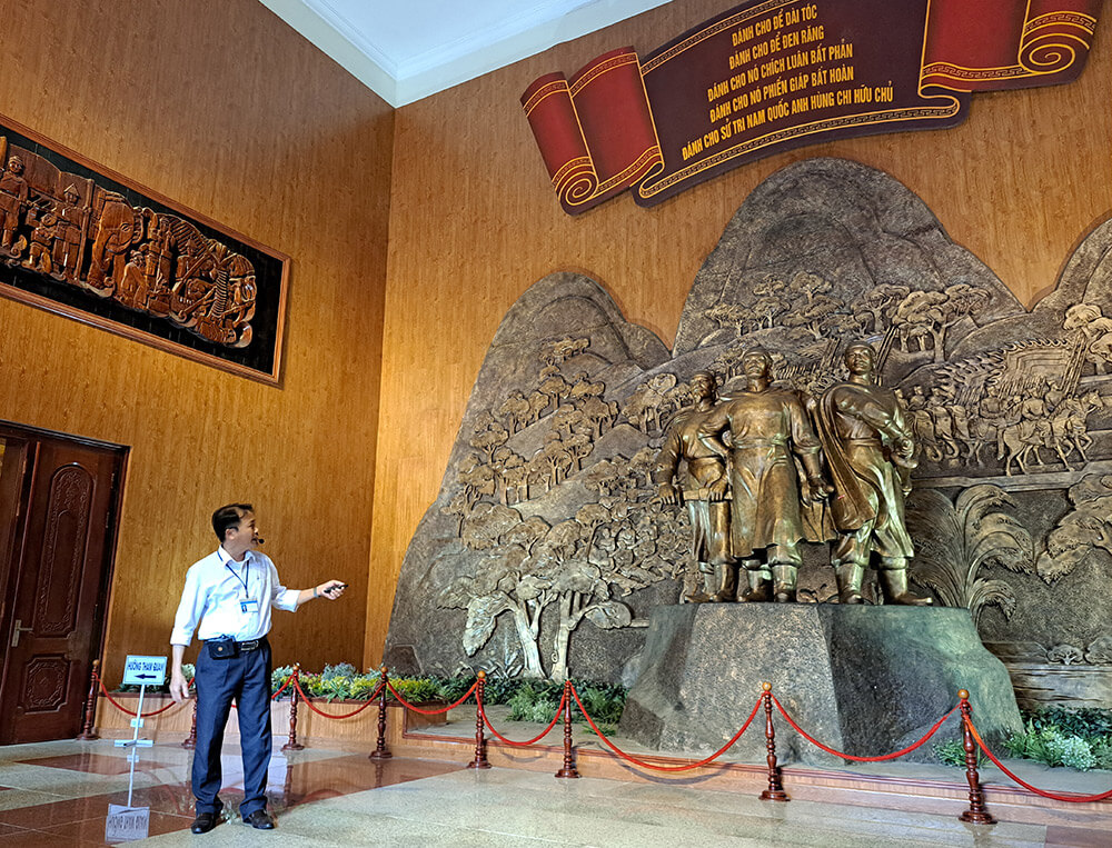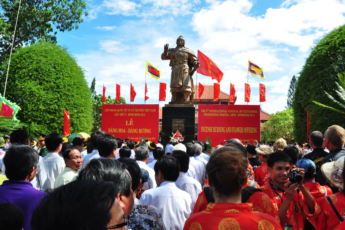 Tam Kiet Tay Son 사원 유적 지역에는 Binh Dinh 성 Tay Son 현 Phu Phong 마을에 위치한 Tay Son 궁전과 Truong Trau 부두 유적지 등 2개의 유물이 포함되어 있습니다. 18세기 말 Tay Son 왕조의 Tay Son 운동 지도자인 Nguyen Nhac, Nguyen Hue 및 Nguyen Lu 세 형제의 이름과 관련이 있습니다. 총리가 특별 국가 기념물로 지정하기로 결정했습니다(2014년 12월 31일자 결정 번호 2408/QD-TTg). 역사적 자료에 따르면 Tay Son 왕조의 조상은 원래 Nghe An성 Hung Nguyen 지역의 Ho 가문 출신이었습니다. Quy Ninh의 Tay Son Nhat 마을에서 휴식을 취하세요. Nguyen Nhac의 아버지 Ho Phi Phuc 씨와 그의 아내 Nguyen Thi Dong 씨는 사업상의 편의를 위해 Kien My 마을(현재 1 블록, Phu Phong, Tay Son, Binh Dinh)로 이사했습니다. Kien My 마을은 또한 순교자들의 집결지이자 Tay Son 저지대 농민 운동의 첫 번째 기지이기도 합니다. Nguyen Nhac과 그의 두 남동생 Nguyen Hue와 Nguyen Lu는 Tay Son 봉기를 주도하여 Nguyen Hue와 Nguyen Nhac을 왕위에 올렸습니다. Tay Son 왕조가 몰락한 후 Kien My 마을에 있는 Ho Phi Phuc 부부의 집이 불타고 파괴되었습니다. 얼마 후, 오래된 집의 기초 위에 지역 주민들이 기여하여 키엔미(Kien My) 마을 공동 주택이라는 이름의 Tay Son Tam Kiet을 비밀리에 숭배하기 위해 크고 장엄한 공동 주택을 지었습니다. 1946년에 공동 주택이 불타버렸고, 1958년부터 1960년까지 빈케 사람들은 다시 한번 떠이선 궁전이라는 새로운 사찰을 건립하여 공식적으로 떠이선 세 형제를 숭배하고 매년 기념일 축제를 열었습니다. 떠이선디엔(Tay Son Dien)은 쪼개진 돌 기초, 견고한 벽돌 벽, 시멘트 타일 지붕을 갖춘 딘(Dinh) 스타일로 지어졌으며 면적은 100제곱미터가 넘습니다. 본당은 3개 구획으로 구성되어 있으며, 가운데는 Quang Trung 황제 - Nguyen Hue를 모시고, 오른쪽은 Thai Duc 황제 - Nguyen Nhac을 모시고, 왼쪽은 Dong Dinh Vuong - Nguyen Lu를 모시고, 왼쪽과 오른쪽은 군 관화를 모시는 신사입니다. Tay Son 가족의 두 박공에는 의식을 치르기 위한 공과 북이 있습니다. 1998년에 국가는 떠이선(Tay Son) 궁전을 건설하고 확장했습니다. 사원은 철근 콘크리트로 만들어졌으며 고대 사원 면적의 3배에 달하는 상당히 크고 웅장하며 고대 건축물로 재건되었습니다. 오래된 공동 주택으로, 지붕은 콘크리트로 주조되고 우스꽝스러운 비늘 타일로 덮여 있습니다. 대웅전 앞에는 옛 사찰과 같은 정자가 있고, 양쪽에는 기둥을 감싸고 있는 장엄한 용이 장식된 큰 기둥이 두 줄로 늘어서 있다. 집 앞에는 사원의 역사를 요약한 붉은색 화강암 비석이 있습니다. 전기 게이트는 동일하게 유지됩니다. 우물 부지는 육각형 쉼터와 비늘 타일로 덮인 콘크리트 지붕으로 장식되었으며, 주변 타마린드 나무도 이전보다 더 넓게 개조되었습니다. 2004년에는 9개의 도자기 조각상을 가져와서 외부를 진짜 금으로 덮고 내부 성소에 안치했습니다. 뒤쪽 홀에는 3개의 제단이 있고 중앙에는 Quang Trung 황제 - Nguyen Hue를 숭배하는 제단이 있습니다. 오른쪽에는 Thai Duc - Nguyen Nhac 황제를 숭배하는 제단이 있습니다. 왼쪽에는 Dong Dinh Vuong - Nguyen Lu의 제단이 있습니다. 제단 뒤에는 조각된 용, 문양 및 금박 래커가 있는 커다란 나무 격막이 있습니다. 앞쪽 세 개의 제단 양쪽에는 8개의 무기를 보관하는 나무 선반이 두 개 있습니다. 내궁의 동쪽과 서쪽에는 떠이선(Tay Son) 시대의 공무원, 신, 장군을 숭배하는 제단이 있습니다. Tay Son Palace는 수년에 걸쳐 우여곡절을 겪었지만 국가 영웅 Quang Trung의 위대한 공헌을 기념하고 경의를 표하기 위해 지역 주민들에 의해 여러 세대에 걸쳐 보존, 보존 및 장려되었습니다. – Nguyen Hue의 전투 경력 나라를 건설하고 수호하기 위해. 출처: 빈딘성 문화체육부