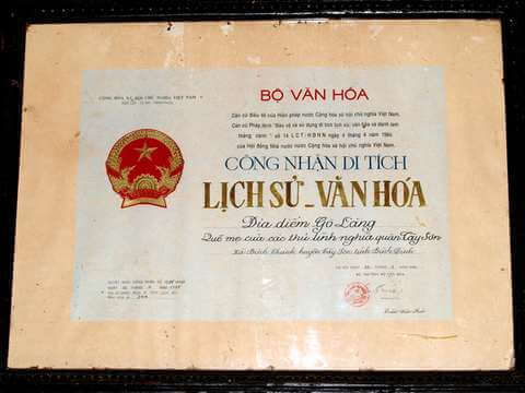 고랑(Go Lang) 유물은 빈딘(Binh Dinh)성 떠이선(Tay Son)현 빈탄(Binh Thanh) 면 푸락(Phu Lac) 마을에 위치해 있습니다. 이곳에는 떠이선 농민 운동의 뛰어난 지도자인 Nguyen Nhac, Nguyen Hue 및 Nguyen Lu의 세 가지 Tay Son 걸작의 어머니인 Nguyen Thi Dong 여사의 고향인 정원과 오래된 집 바닥의 흔적이 남아 있습니다. 18세기에. 이 유물은 1988년 11월 16일에 국가 수준으로 선정되었습니다. 고랑(Go Lang) 유물에는 사람들의 마음을 사로잡고 떠이선(Tay Son) 봉기를 일으킨 초기의 떠이선(Tay Son) 세 가지 걸작과 관련된 많은 사건이 있습니다. 이는 응웬(Nguyen) 왕조의 복수와 파괴에도 불구하고 지역 주민들이 여러 세대에 걸쳐 자주 전하는 전설과 구전 이야기입니다. 전쟁... 이야기 "Nguyen Nhac Vi Vuong". 이야기는 다음과 같습니다. "어느 늦은 밤, 고랑에 있는 Ho Phi Phuc - Nguyen Thi Dong 씨 부부의 집에서 사망 기념일에 모두가 작별 인사를 마치고 떠났을 때 모두가 충격을 받았습니다. 혼성 쪽에서 들려오는 징소리, 이전에는 볼 수 없었던 엄숙하고 신비한 광경. 모두가 멈춰 서서 산 위 어느 곳에서 빛나는 마법의 빛을 보았다. 빛이 있는 곳에 도착했는데, 머뭇거리고 누구도 감히 나아갈 수 없었는데, 갑자기 빛 속에서 붉은 얼굴과 길고 흰 수염, 잠자리 모자를 쓴 노인이 나와서 큰 소리로 말했습니다. Nguyen Nhac이 있습니까? 나는 Nguyen Nhac 왕에게 칙령을 내리기 위해 이번에 세상에 내려오라는 옥황 제의 명령에 순종했습니다. 또는 이야기: Tay Son 형제가 할머니의 고향으로 돌아올 때마다 그들은 종종 Ho Phi Phuc 씨 부부의 집 옆에 있는 키 큰 보리수에 말을 묶습니다. 그래서 그 지역 사람들은 다음과 같은 속담을 가지고 있습니다. "그는 다시 말을 타고 돌아왔습니다. 그의 말이 먹을 수 있도록 보리풀을 자르는 것입니다." Tay Son 왕조가 죽은 후 Nguyen Gia Long 왕조는 매우 가혹한 복수 정책을 시행했습니다. 유물에 있던 Ho Phi Phuc 부부의 오래된 집은 파괴되어 집의 기초만 남아 있는 빈 땅이 되었습니다. , 각 면에 0.4m 크기의 로제트 문양이 새겨진 사각기둥석과 깨진 접시의 도자기 파편이 많이 남아 있다. 오래된 정원에는 고대 나무도 있습니다: Thi, Thien Tue... Nguyen 왕조 동안 Phu Lac 사람들은 항상 그들의 조상과 고국의 영웅들을 기억하고 경의를 표했습니다. 그들은 Cay Thi 사원이라고 불리는 Son Quan(산의 신)을 숭배하기 위해 사원을 세웠으며 일부 사람들은 그것을 Cay Thi 사원이라고 불렀습니다. Ho Phi Phuc - Nguyen Thi Dong 여사는 음력 설날인 11월 14일 옛 정원에서 Ho Phi Phuc - Nguyen Thi Dong, Tay Son Tam Kieu 부부(Nguyen Nhac, Nguyen Hue 및 Nguyen Lu)를 몰래 숭배했습니다. 풀락(Phu Lac) 마을 공동 주택의 연간 달력은 꽃향과 여우 꿀을 기념하는 형태로 트엉탄 예배일(새 쌀 축제)이라고 합니다. 1999년 지방 정부는 호피푹(Ho Phi Phuc)-응웬티동(Nguyen Thi Dong) 씨 부부와 그들의 친족, 외가, 그리고 마을을 공개적으로 설립한 조상들을 숭배하기 위해 오래된 유적지 위에 사원을 건립했습니다. Tay Son의 세 가지 걸작; 출처: 빈딘성 떠이선현 인민위원회