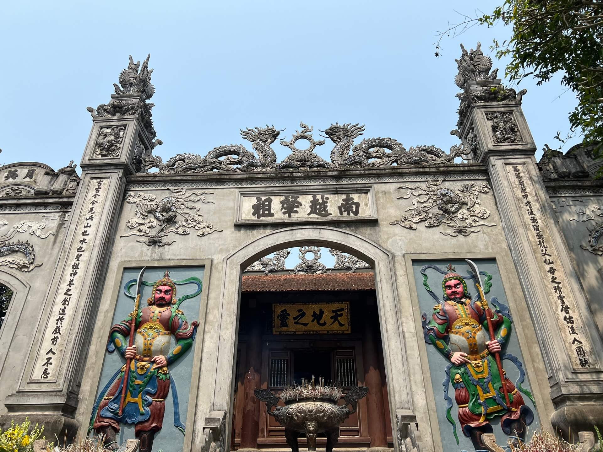 Thuong Temple의 문자 그대로 이름은 Kinh Thien Lanh Dien(Nghia Linh 산의 천국 사원)입니다. 이 사원은 푸토(Phu Tho)성 비엣찌(Viet Tri) 시, 히끄엉(Hy Cuong) 코뮌 코틱(Co Tich) 마을에 위치한 훙(Hung) 사원 단지 유적지의 건축 작품입니다. Thuong 사원은 산의 신, 쌀의 신, Thanh Giong을 숭배하는 사원의 오래된 기초 위에 세워졌으며, Hung 왕은 모든 사람들에게 좋은 날씨와 좋은 농작물을 바라며 하늘과 땅에 기도하는 의식을 자주 거행했습니다. 번영하고 행복하세요. Thuong 사원은 15세기에 건축되었음을 암시하는 문서가 있습니다. 사원에는 현재 3개의 구획과 곡선 타일 지붕이 있습니다. 사원 문에는 가로 그림인 Nam Viet Trieu To(베트남의 영원한 총대주교)가 있고, 사원 내부에는 Tu Ton Bao Chi(후손이 보존해야 함)라는 훌륭한 그림이 있습니다. 거룩한 족장들의 공로를 찬양하는 대련도 많이 있습니다. 사원의 제단에는 18대 Hung 왕(Hung Tu, 18대 및 3명의 산신)의 석판이 있습니다: Tuot Cao Son(Nghia Linh 산), Ap Son(Troc 산), Vien Son(Toc 산). 사원 문 앞에는 An Duong 왕이 Hung 가문의 나라와 비단을 영원히 보존하겠다고 맹세하면서 세웠다고 전해지는 두 개의 돌기둥이 있습니다. 현재 이 사원은 벨 드럼 하우스, 대제단, 예배 전, 하렘의 4개 층으로 지어진 브엉(Vuong) 스타일의 건축물을 가지고 있습니다. 트엉 사원(Thuong Temple)에는 베트남의 창시자를 의미하는 "Nam Viet Trieu To"라는 제목의 훌륭한 그림이 있습니다. 사원은 Vuong 문자 스타일로 만들어졌으며 3층으로 이루어져 있습니다. 앞에는 의례문이 있고 그 다음에는 대제단(1층), 앞쪽 제단(2층), 하렘(3층)이 있다. "국가 특별 역사 및 문화 유물인 훙 사원"이라는 책에는 다음과 같이 기록되어 있습니다. 의식 문의 건축물은 응우옌 왕조 스타일로, 4개의 큰 기둥이 3개의 돔형 문을 형성합니다. 위의 기둥은 등불 모양으로 덮여 있고, 네 면은 네 마리의 신성한 동물로 장식되어 있으며, 기둥 꼭대기에는 네 마리의 사자가 덮여 있습니다. 중문 지붕 위에는 두 마리의 용이 구불구불한 형상인 '태양 옆에 두 마리의 용'이 장식되어 있습니다. 양쪽에는 권투 선수의 동상이 있고 위에는 불사조와 서류 가방의 이미지가 있습니다. 대파빌리온에는 전면 제단과 하렘 구조가 서로 연결된 3개의 레벨로 구성되어 있습니다. 건물은 3개의 구획과 2줄의 기둥 구조를 가지고 있습니다. 특히 하렘은 엄숙한 장소로, 내부에는 4개의 제단이 있습니다. 앞쪽 세 개의 제단에는 용의 왕좌와 제단에 위판이 놓여 있습니다. 모두 정교하게 조각되고, 칠해져 있고, 화려하게 금도금되어 있습니다. Thuong 사원의 왼쪽에는 Thuc Phan이 18대 Hung 왕에 의해 즉위했을 때 Hung 왕이 넘겨준 나라를 보호하겠다고 맹세하기 위해 세운 돌맹약 기둥이 있습니다. 시간이 지남에 따라 돌기둥의 흔적이 묻혔습니다. 1968년에 연구자들은 트엉 사원(Thuong Temple) 지역 지하 깊은 곳에서 고대 돌기둥을 발견했습니다. 이후 성전 뜰 앞 오른쪽에 맹세석기둥을 다시 세웠다. 2003년에 돌기둥은 원래 디자인으로 복원되었습니다. 2009년에 현재 디자인과 함께 준보석으로 장식 및 개조되었습니다. 출처: 푸토신문