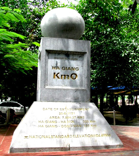 Cột mốc KM số 0 tọa lạc ngay trước trụ sở Ủy ban Nhân dân tỉnh Hà Giang,giữa trung tâm thành phố. Đây là điểm bắt đầu của Quốc lộ 2,nối Hà Giang với thủ đô Hà Nội và các tỉnh phía Nam. Không chỉ mang tính chất giao thông,KM số 0 còn là cột mốc tinh thần,nơi đánh dấu sự khởi đầu của mọi cung đường dẫn lên miền đá – Đồng Văn,Yên Minh,Mèo Vạc,Lũng Cú...
