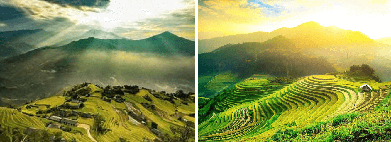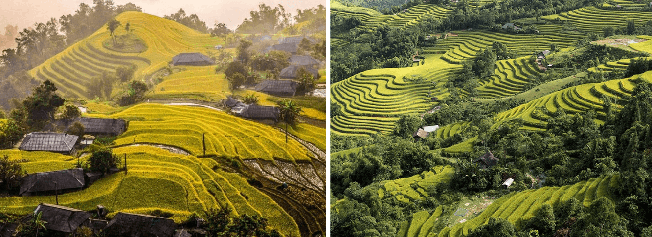 Khi đặt chân đến ruộng bậc thang Hoàng Su Phì,cảm giác đầu tiên là choáng ngợp trước vẻ đẹp hùng vĩ và yên bình. Những thửa ruộng vàng óng trải dài theo triền núi tạo nên khung cảnh như tranh vẽ.