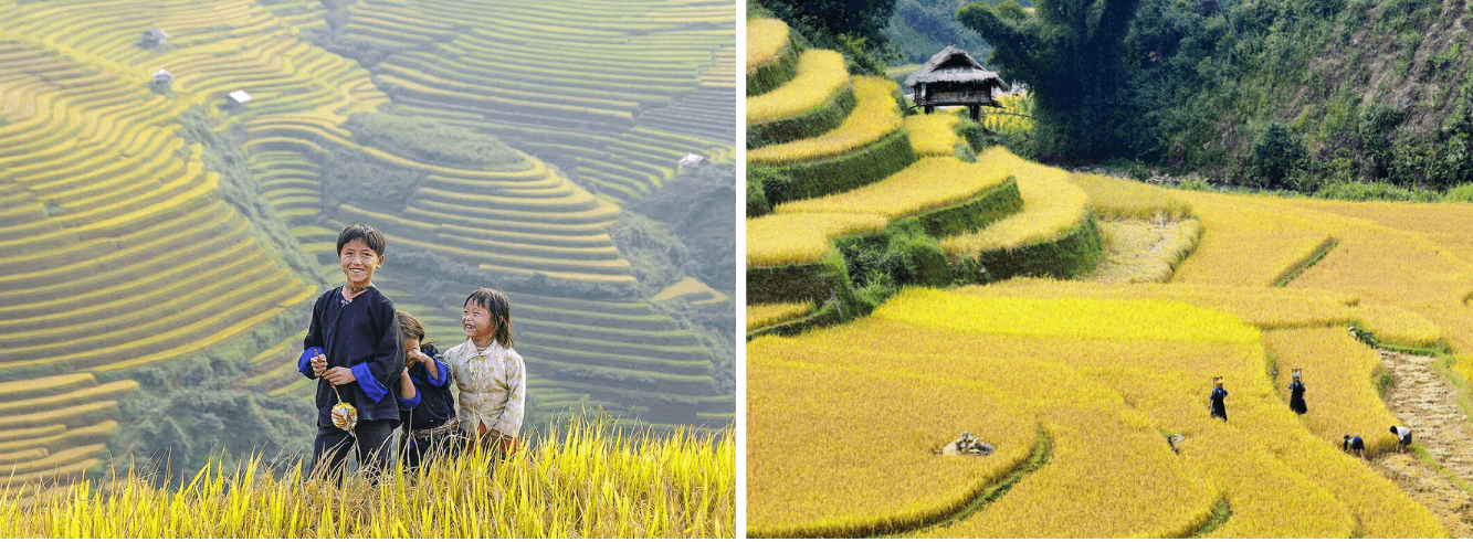 Không khí trong lành,mùi lúa chín thơm ngát và tiếng cười nói của người dân bản địa mang lại cảm giác thư thái,gần gũi. Đi giữa những con đường nhỏ quanh co,bạn sẽ cảm nhận rõ sự kỳ công và bền bỉ của con người nơi đây.