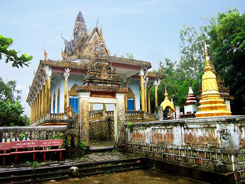 Tọa lạc tại Khu phố Sơn Tiến, thị trấn Sóc Sơn huyện Hòn Đất, Chùa Sóc Xoài là ngôi chùa có kiến trúc điển hình của Phật giáo Nam tông Khmer tại tỉnh Kiên Giang. Chùa được công nhận Di tích lịch sử văn hóa cấp Quốc gia năm 1989. Được thành lập vào những năm cuối thế kỷ 18 do Hòa thượng Danh Phiêch sáng lập. Trải qua 19 đời trụ trì, chùa Sóc Xoài không chỉ là trung tâm sinh hoạt tôn giáo, tín ngưỡng, văn hóa cho chư tăng và đồng bào Khmer mà còn là nơi nuôi chứa cán bộ cách mạng trong cuộc đấu tranh chống Pháp, chống Mỹ cứu nước. Bên cạnh đó, chùa Sóc Xoài vừa là trường học dạy chữ viết, là trung tâm giáo dục cho đồng bào Khmer tại địa phương. Theo Đại đức Danh Hữu Giang, Phó trụ trì chùa Sóc Xoài cho biết, ngôi chùa Sóc Xoài được coi là một địa điểm che chở, quây quần bà con Khmer tại địa phương, là điểm kết nối văn hóa, tình đoàn kết dân tộc, là nhân tố làm đẹp thêm truyền thống dân tộc, tôn giáo của nhân dân Hòn Đất nói riêng và tỉnh kiên Giang nói chung. Theo Đại đức Danh Hữu Giang, Phó trụ trì chùa Sóc Xoài nói: Chùa Sóc Xoài có truyền thống đấu tranh trong cuộc đấu tranh giành độc lập dân tộc, thống nhất đất nước và ngày nay luôn thể hiện vai trò hướng dẫn đồng bào Khmer tu tập theo giáo lý Phật, thực hành văn hóa theo truyền thống dân tộc. Ngoài ra, chùa Sóc Xoài còn tái hiện một số dụng cụ dùng để đánh bắt cá, làm ruộng nương được làm bằng tre như: nôm, sniên, trúm, giỏ đựng cá,… và nhiều vật dụng sinh hoạt như: nọc cấy, gàu sòng, bừa.. đồng bào Khmer xưa. Theo sự phát triển của xã hội thì các công cụ lao động sản xuất cũng như các vật dụng phục vụ đời sống sinh hoạt của đồng bào Khmer xưa không còn phù hợp với thời đại. Các vật dụng này, theo thời gian sẽ dần đi vào quên lãng và hư hỏng nếu không được bảo quản và giữ gìn. Vì thế các vật dụng này được tái tạo lại với mục đích cho con cháu sau này biết đến các hoạt động sản xuất và nét đẹp văn hóa của ông cha từ thời xa xưa. Về trường học, ở chùa Sóc Xoài thì có dạy tiếng Bali, tiếng săncrít và kinh luận giới. Trong đó, có ngôn ngữ Khmer, giới luật của đức Phật. Bên cạnh đó, còn phối hợp để mở lớp trung cấp Luật. Lớp này là để cho Chư tăng và phật tử hiểu được cái cốt lõi là chính sách, là đường lối pháp luật của nhà nước mình để cho nắm rõ, nhất là luật về tôn giáo, khi mình hiểu rõ mình sẽ dễ hoạt động trong cộng đồng mình và trong chùa mình muốn xây dựng hoặc muốn gì đó cũng không vi phạm pháp luật. Bên cạnh việc dạy chữ, đào tạo kiến thức về văn hóa, về pháp luật cho chư tăng, phật tử, chùa Sóc Xoài còn bảo tồn, lưu giữ bản sắc văn hóa dân tộc thông qua việc tổ chức chương trình văn nghệ, thi diễn thời trang. Thông qua các lễ hội được tổ chức đúng truyền thống văn hóa, giúp giới trẻ người Khmer tại địa phương hiểu biết, tôn quý giá trị văn hóa truyền thống, từ đó hiểu đúng ý nghĩa của lễ hội, bảo tồn giá trị văn hóa dân tộc, nâng cao vai trò của người Khmer trong xây dựng cộng đồng, xây dựng và bảo vệ đất nước. Nguồn: Cổng thông tin điện tử Sở Văn hóa và Thể thao Kiên Giang