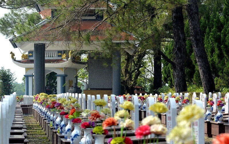 Nghĩa trang liệt sỹ Trường Sơn tọa lạc trên khu đồi Bến Tắt, cạnh đường quốc lộ 15, thuộc địa phận xã Vĩnh Trường, huyện Gio Linh; cách trung tâm tỉnh lỵ (thị xã Đông Hà) khoảng 38km về phía Tây bắc; cách quốc lộ 1A (ở đoạn thị trấn huyện lỵ Gio Linh) chừng hơn 20km về phía Tây bắc. Sau ngày đất nước thống nhất, Trung ương Đảng và Bộ Quốc phòng đã phê chuẩn dự án xây dựng nghĩa trang liệt sỹ Trường Sơn tại địa bàn tỉnh Quảng Trị làm nơi tưởng niệm, tôn vinh những người con thân yêu của tổ quốc đã anh dũng hy sinh xương máu của mình trên các nẻo đường Trường Sơn vì sự nghiệp giải phóng dân tộc. Nghĩa trang được khởi công xây dựng vào ngày 24/10/1975 và hoàn thành vào ngày 10/4/1977. Chỉ huy xây dựng là Bộ tư lệnh sư đoàn 559 với sự tham gia của hơn 40 đơn vị bộ đội chủ lực và bộ đội địa phương. Ngoài ra còn có tổ công nhân chuyên khắc chữ vào bia đá xã Hoà Hải, huyện Hòa Vang, tỉnh Quảng Nam. Nghĩa trang liệt sỹ Trường Sơn là nơi quy tụ 10.333 phần mộ của các liệt sỹ; có tổng diện tích 140.000m2; trong đó, diện tích đất mộ là 23.000m2, khu tượng đài 7.000m2, khu trồng cây xanh 60.000m2, khu hồ cảnh 35.000m2 và mạng đường ô tô rải nhựa trong khuôn viên nghĩa trang 15.000m2. Phần đất mộ được phân thành 10 khu vực chính. Nghĩa trang liệt sỹ Trường Sơn là nơi an nghỉ đời đời của các chiến sĩ đã hy sinh trên tuyến đường mòn Hồ Chí Minh trong thời kì chống Mỹ cứu nước. Đây là một công trình đền ơn đáp nghĩa đồ sộ nhất, quy mô nhất có tính nghệ thuật cao, thể hiện lòng thương nhớ sâu sắc, niềm biết ơn và sự tôn vinh thầm kín của toàn Đảng, toàn quân và toàn dân ta đối với những người con yêu quý trên mọi miền đất nước đã không tiếc máu xương cho sự nghiệp đấu tranh giải phóng và thống nhất đất nước. Nhân kỷ niệm 40 năm ngày thành lập binh đoàn Trường Sơn (19/5/1959 – 19/5/1999), Đảng và Nhà nước đã quyết định cho nâng cấp, tôn tạo lại nghĩa trang Trường Sơn bao gồm nhiều hạng mục: Cổng vào nghĩa trang Trường Sơn, hệ thống đường và tường bao quanh, mô hình sở chỉ huy, biểu tượng của các địa phương, các cụm tượng, hệ thống thoát nước, điện nội bộ, trồng cây xanh xung quanh nghĩa trang và nhà khánh tiết, đài Tổ quốc ghi công...Đến nay tất cả các hạng mục của các công trình về cơ bản đã được hoàn tất. Nghĩa trang liệt sỹ Trường Sơn ngày nay không chỉ là nơi an nghỉ của các anh hùng liệt sỹ mà còn là nơi suy tôn, là biểu tượng sáng ngời của chủ nghĩa anh hùng cách mạng, của tinh thần, ý chí đấu tranh giành độc lập và khát vọng hòa bình của nhân dân ta. Nghĩa trang liệt sỹ Trường Sơn không chỉ là nơi để các gia đình liệt sỹ, các đoàn đại biểu của Đảng và Nhà nước, chính quyền các địa phương đến viếng thăm và thực hiện công việc đền ơn đáp nghĩa mà còn là nơi hành hương của nhân dân khắp mọi miền đất nước và bạn bè quốc tế theo truyền thống đạo lý cao đẹp của dân tộc Việt Nam: uống nước nhớ nguồn. Hiện nay, nghĩa trang liệt sỹ Trường Sơn có 24 cán bộ, nhân viên thường xuyên chăm lo việc coi sóc, tu bổ và tiếp đón các gia đình liệt sỹ, các đoàn khách trong và ngoài nước đến thăm viếng Nguồn: Văn Phòng Uỷ Ban Nhân Dân Tỉnh Quảng Trị