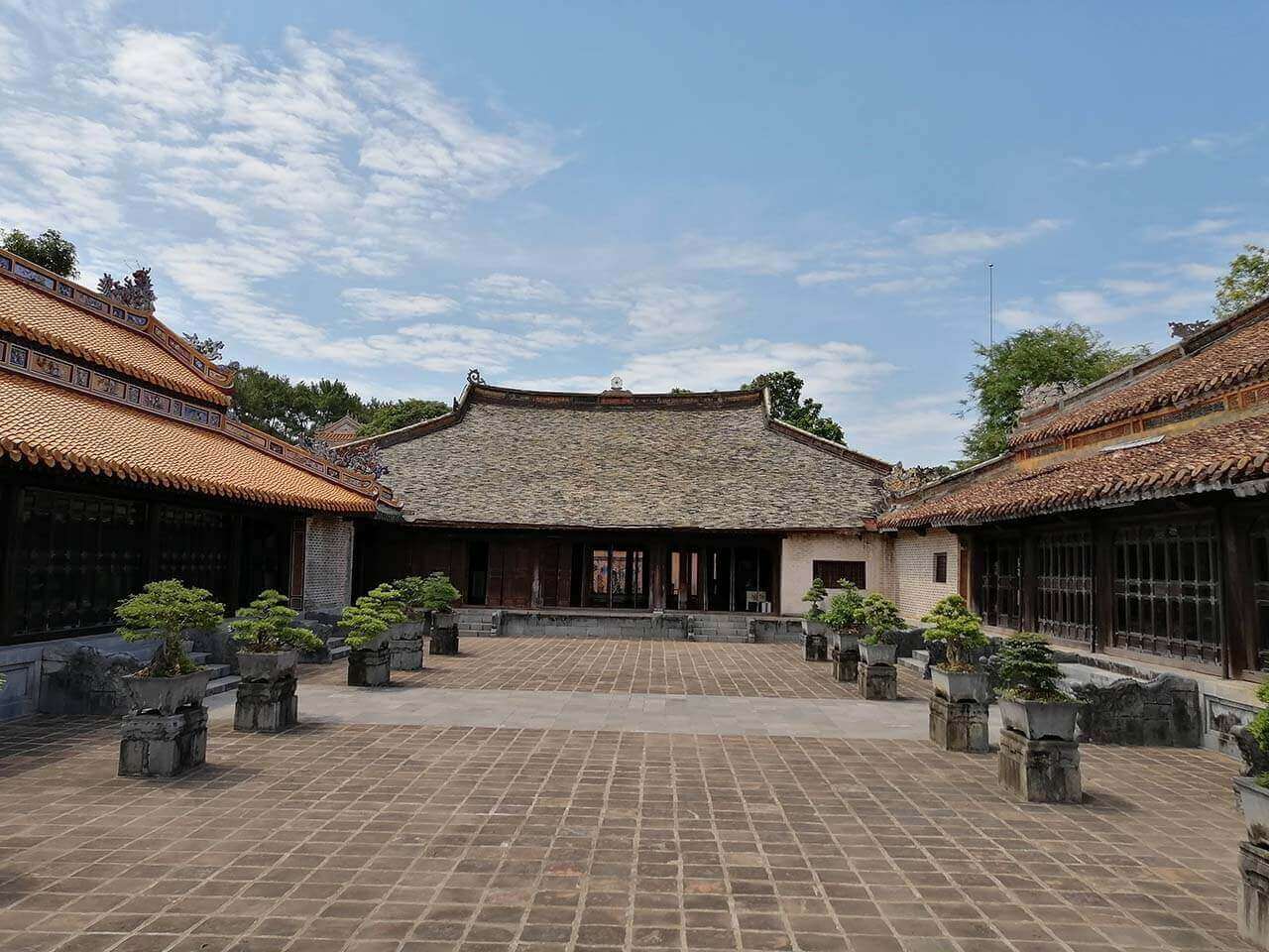 Lăng Tự Đức có địa chỉ tại Phường Thủy Xuân, thành phố Huế, tỉnh Thừa Thiên Huế. Lăng Tự Đức (Khiêm Lăng) được xây dựng trong một thung lũng hẹp thuộc làng Dương Xuân Thượng (nay là thôn Thượng Ba, phường Thủy Xuân, thành phố Huế). Đây là một trong những công trình đẹp nhất của kiến trúc cung đình thời Nguyễn. Lăng nằm giữa một rừng thông bát ngát, cách Huế 8km. Tổng thể kiến trúc Lăng nằm trong một vòng La thành rộng khoảng 12ha, gồm gần 50 công trình kiến trúc lớn nhỏ dàn trải thành từng cụm trên những thế đất cao, thấp hơn nhau chừng 10m. Bố cục khu lăng gồm hai phần chính, trên hai trục song song với nhau lấy núi Giáng Khiêm ở phía trước làm Tiền án, núi Dương Xuân làm Hậu chẩm, hồ Lưu Khiêm làm yếu tố Minh Đường. Các công trình trong Lăng ở cả hai khu vực tẩm điện và lăng mộ đều có chữ Khiêm đặt tên gọi. Toàn cảnh lăng Tự Đức như một công viên rộng lớn. Qua cửa Vụ Khiêm, đến khu vực hồ Lưu Khiêm, trên hồ có Xung Khiêm tạ và Dũ Khiêm tạ, nơi nhà Vua thường đến ngắm hoa, làm thơ và đọc sách. Đi tiếp ba bậc tam cấp bằng đá thanh dẫn vào Khiêm Cung môn, rồi đến điện Hòa Khiêm, đây vốn là nơi làm việc của Vua nhưng nay dùng để thờ phụng Vua và Hoàng hậu. Sau điện Hòa Khiêm đến điện Lương Khiêm, trước là chỗ nghỉ của Vua và sau này trở thành nơi thờ mẹ Vua, bà Từ Dũ. Bên phải điện Lương Khiêm là Ôn Khiêm đường, nơi cất đồ ngự dụng. Phía trái điện Lương Khiêm có nhà hát Minh Khiêm để Vua xem hát, đây được coi là nhà hát cổ nhất Việt Nam hiện còn được bảo tồn. Ngay sau hai hàng tượng quan văn võ uy nghi là Bi đình (nhà bia), tấm bia làm bằng đá thanh lớn có khắc bài Khiêm Cung ký của Vua Tự Đức dài 4.935 chữ để nói về cuộc đời, vương nghiệp cùng những lỗi lầm và sai phạm của mình. Trên ngọn đồi nằm bên kia hồ bán nguyệt Tiểu Khiêm Trì là Bửu Thành xây bằng gạch, chính giữa có ngôi nhà nhỏ xây bằng đá thanh, nơi Vua yên nghỉ. Lăng Tự Đức là một bài thơ tuyệt tác, một bức tranh sơn thủy hữu tình. Công trình được công nhận là di tích cấp quốc gia ngày 29/4/1979. Nguồn: Cổng thông tin điện tử tỉnh Thừa Thiên Huế