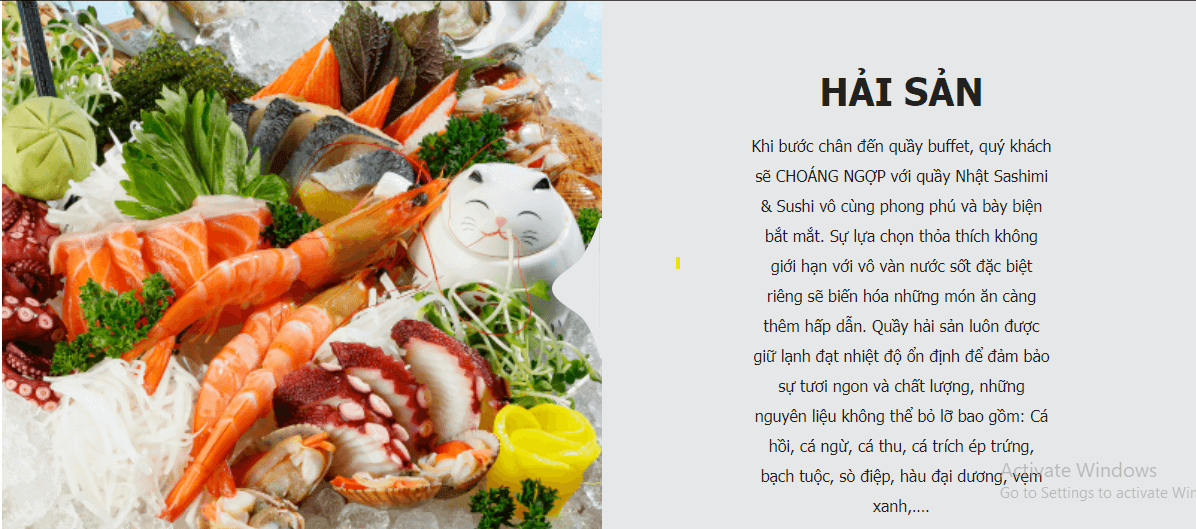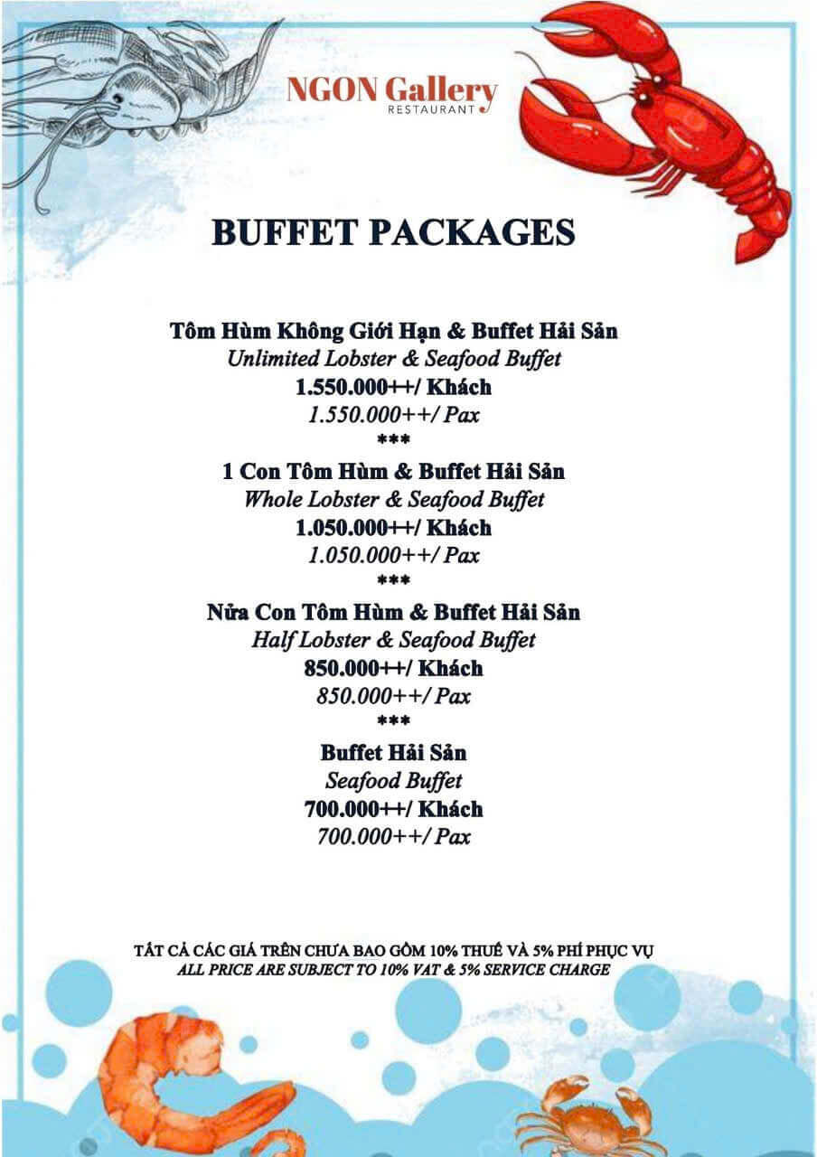 Nhà hàng Ngon Gallery chuyên phục vụ các món buffet hải sản thơm ngon và đa dạng. Không gian bếp mở sẽ cho bạn một trải nghiệm ẩm thực phong phú gồm hơn 100 món đến từ nhiều nước trên thế giới như Hàn Quốc, Nhật Bản, Trung Quốc, Thái Lan, Châu Âu và ẩm thực địa phương Việt Nam với điểm nhấn là Tôm Hùm & Hải Sản.