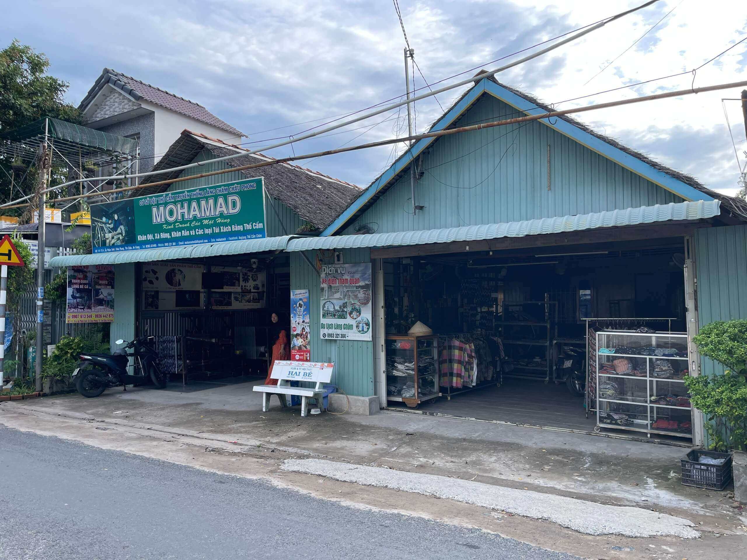 Cơ sở dệt Mohamad tôi đến là một ngôi nhà cổ đã hơn 80 năm. Bên trong được bày trí một góc dựng lại để chụp hình đám cưới cô dâu chú rể,khách du lịch có thể đến đây thuê đồ và chụp hình với giá chỉ 30.000 đồng/bộ. Trong chuyến đi này,chúng tôi đã mua 2 chiếc túi và 3 chiếc khăn thổ cẩm với giá chỉ 400.000 đồng.