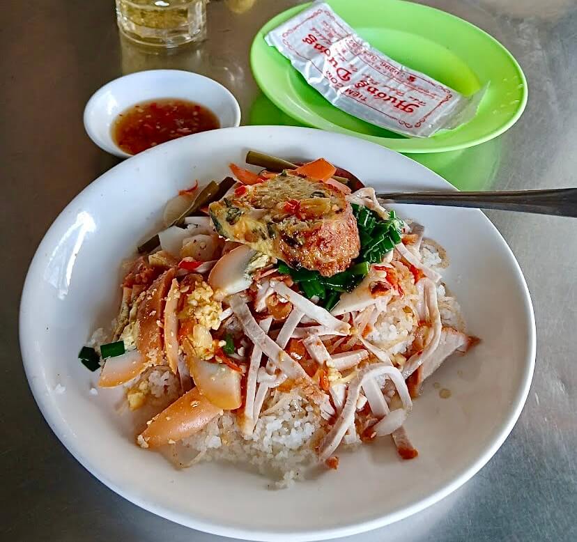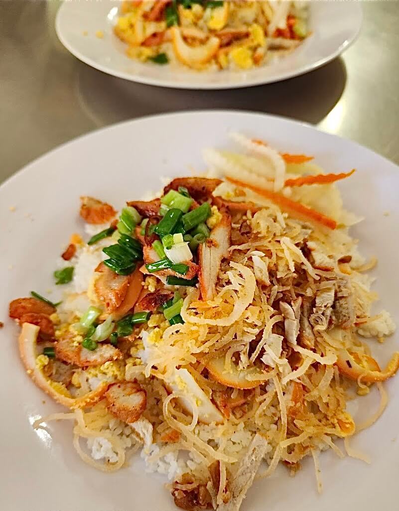 Cơm tấm ở đây được người dân địa phương và khách du lịch khen ngon. Tuy quán bình dân nhưng rất đông khách mỗi khi sáng sớm. Đĩa cơm đơn giản,đẹp mắt và đầy đủ các thành phần như lạp xưởng,bì,chả,trứng rim. Điều đặc biệt ở đây là có chén nước mắm vô cùng đậm đà.