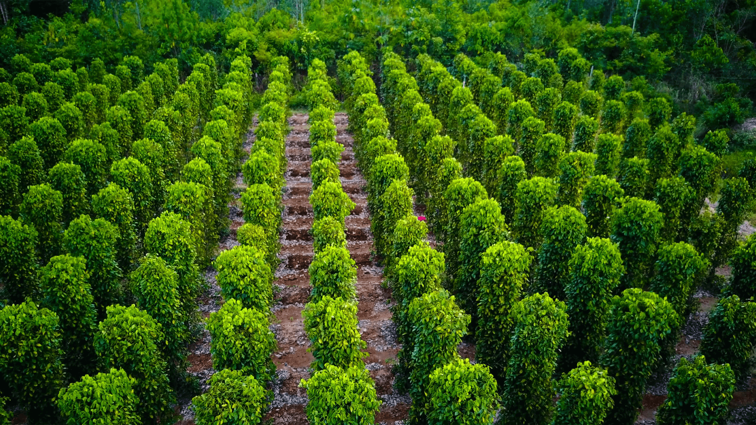 Vườn tiêu Phú Quốc là thiên đường của những hàng tiêu xanh mướt, từng chùm tiêu đỏ rực và tiêu sọ trắng tinh khiết, mang đến không gian thiên nhiên tuyệt vời.