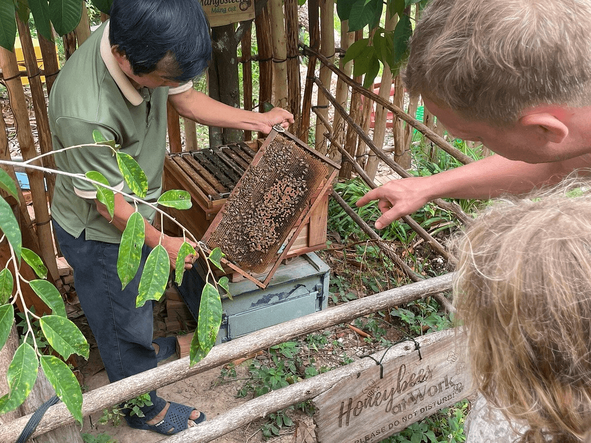 Khi đến với trại ong Phú Quốc,du khách sẽ có cơ hội hòa mình vào thế giới của những tổ ong hoang dã. Bạn có thể tham gia các tour hướng dẫn để tìm hiểu về cấu trúc của tổ ong,quá trình nuôi ong và sản xuất mật ong từ những chuyên gia địa phương giàu kinh nghiệm. Việc này giúp du khách hiểu rõ hơn về vai trò quan trọng của ong đối với hệ sinh thái tự nhiên và con người.