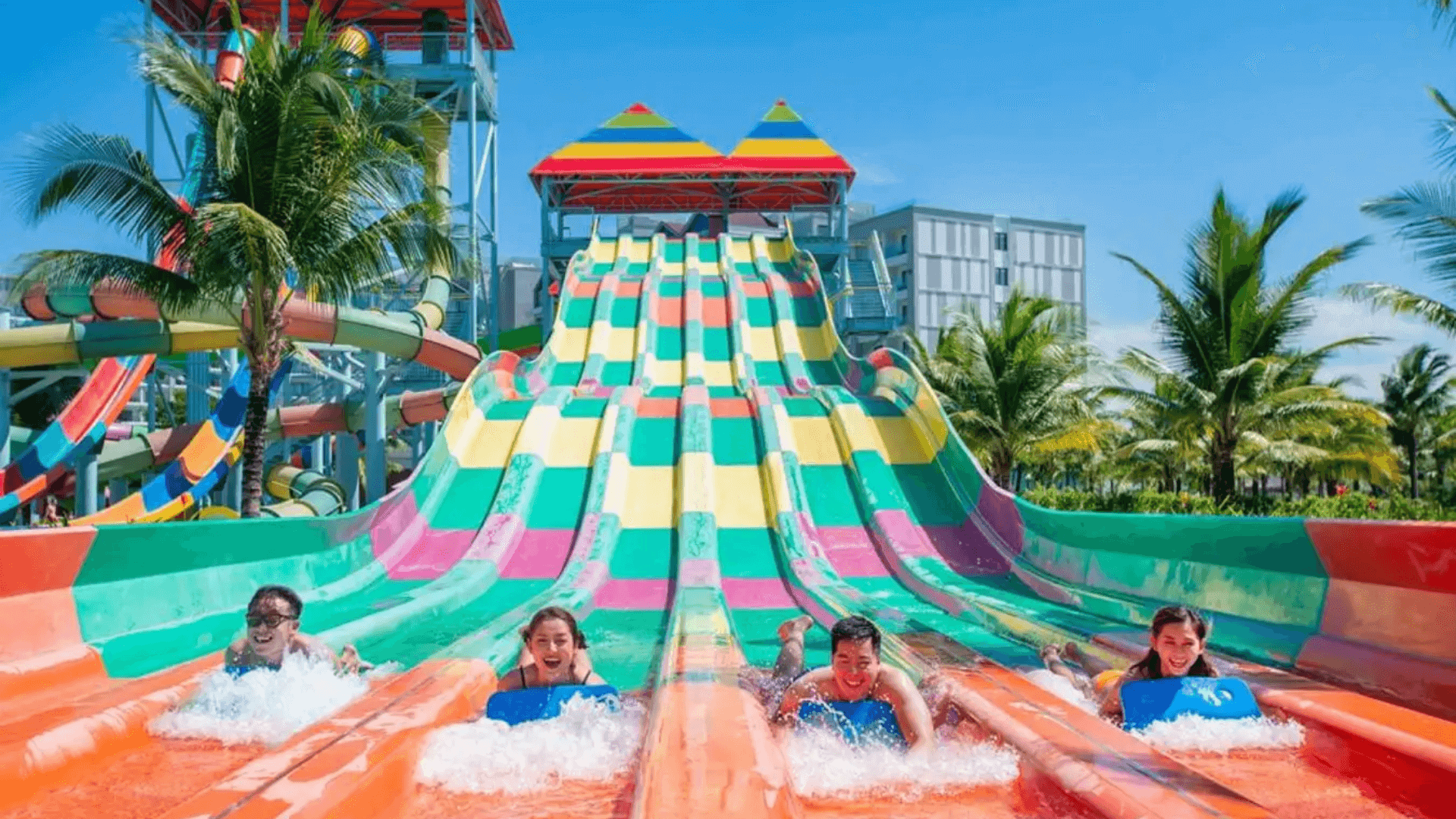 Water Park is known as the first freshwater park in Vietnam built on the hotel grounds. Because it is located on the hotel grounds,just a few steps away,visitors can "have fun" with countless exciting water games.