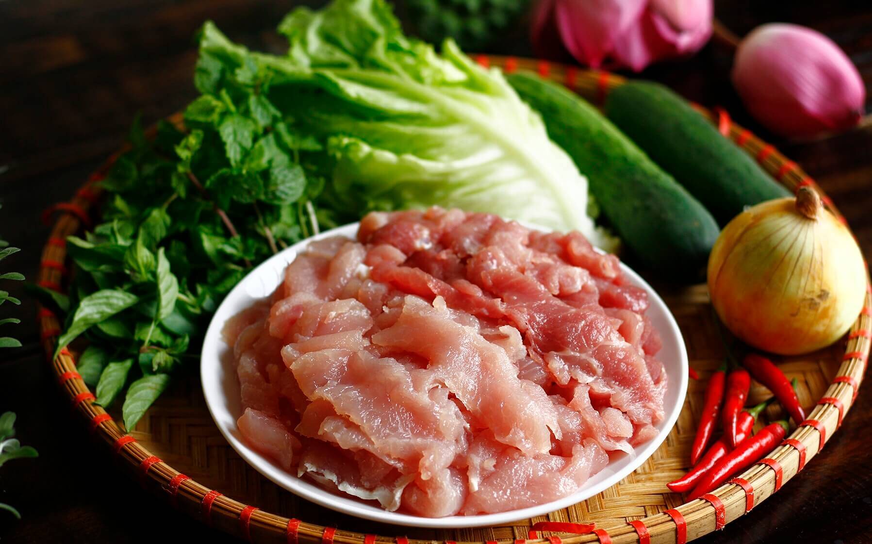 - Chọn thịt lợn tươi ngon với các dấu hiệu như màu sắc hồng tươi,liền khối chắc,khi ấn tay có độ đàn hồi tốt,đường cắt mặt thịt khô ráo.