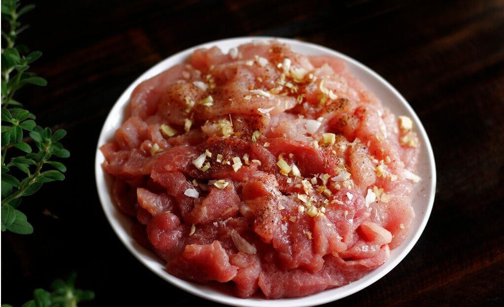 Phần thịt heo được ướp với tiêu,tỏi và các gia vị khác (Ảnh: sưu tầm)