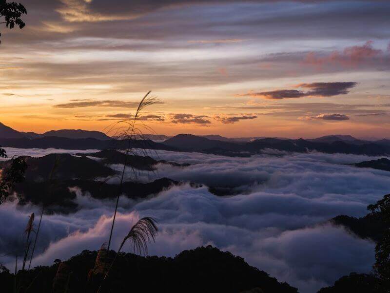 * Winter: Que Peak becomes magical with a layer of fog and white blades of reed grass. The feeling of having a campfire in the middle of a pine forest on cold winter nights will be an unforgettable experience.