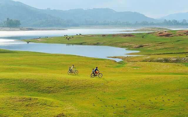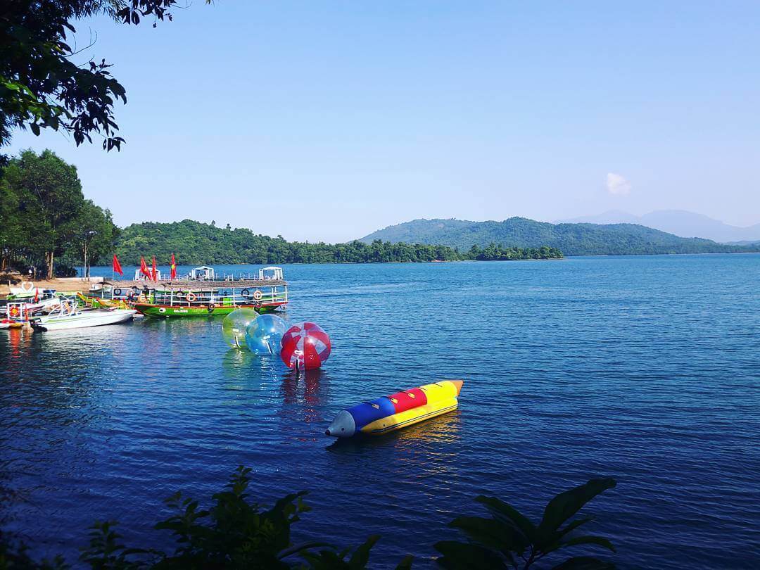 * Explore natural beauty: Phu Ninh possesses a wild and majestic beauty. You can rent a boat to walk on the lake and admire the rolling mountains,green forests,and peaceful small villages along the lake.