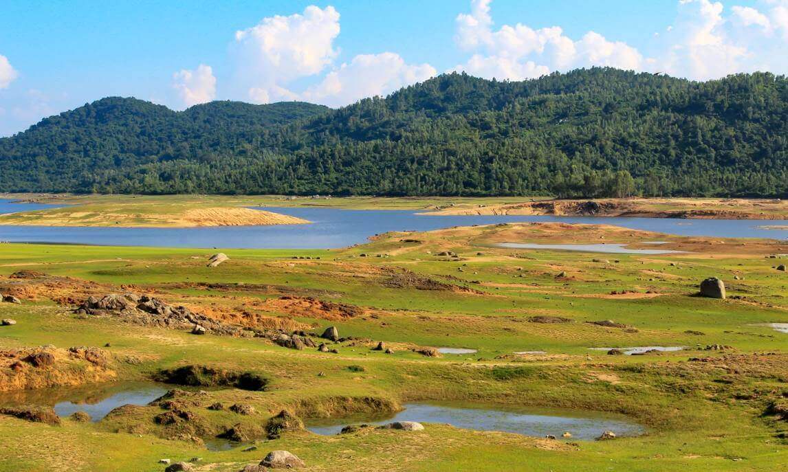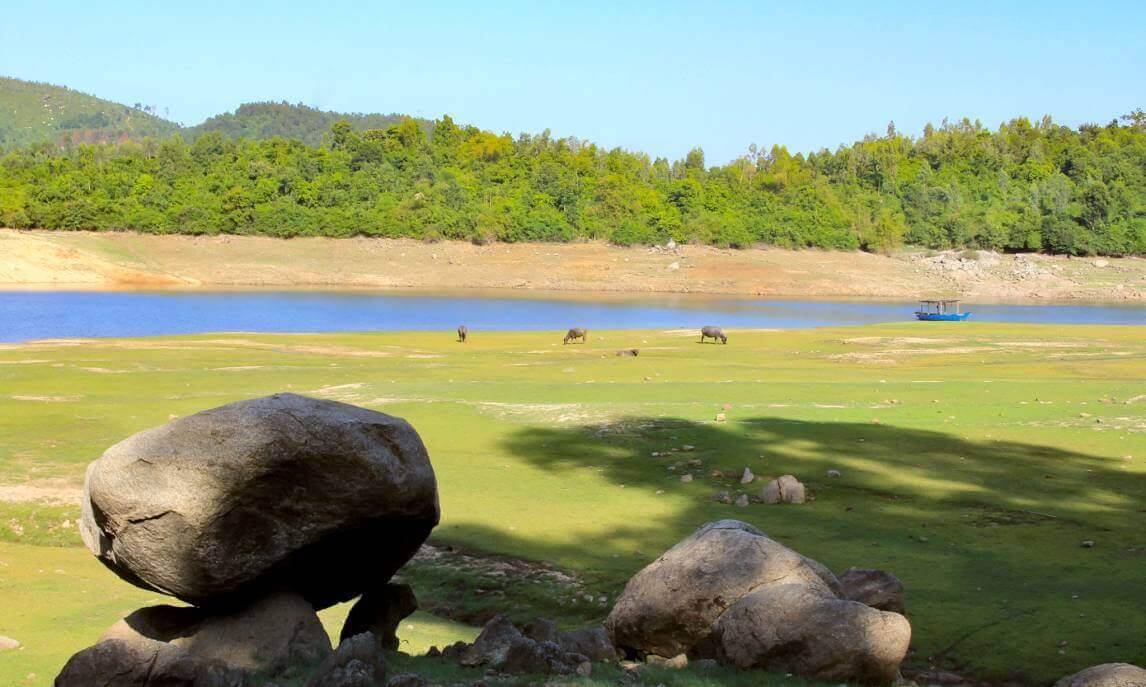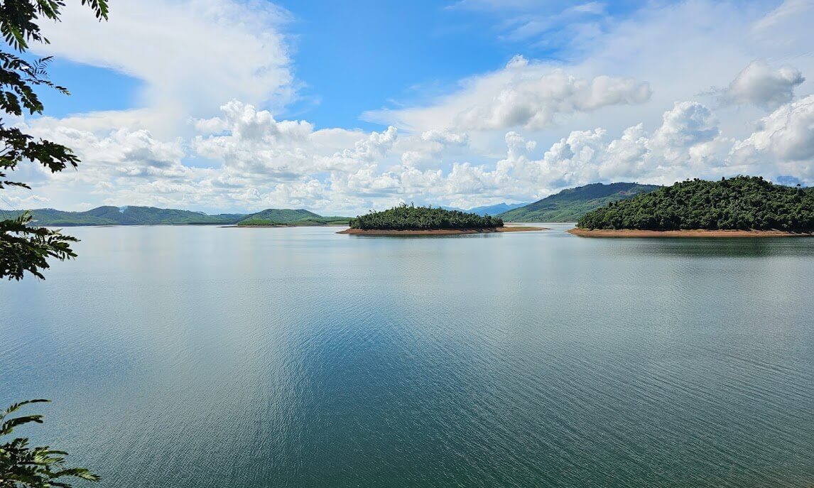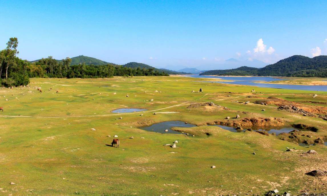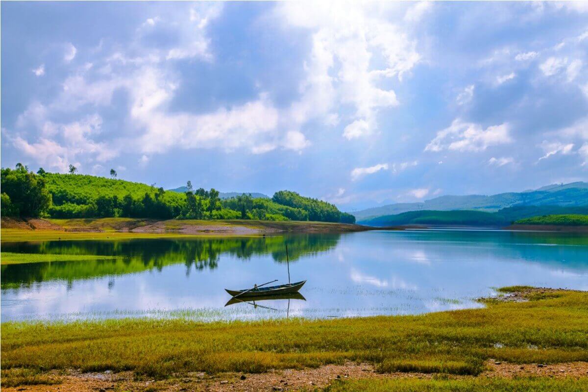With a large water surface area,Phu Ninh Lake is like a giant mirror reflecting the blue sky and floating clouds. Surrounding the lake are undulating mountains,creating a majestic natural scenery. The ecosystem here is extremely diverse with many rare species of animals and plants. Especially,in the dry season,when the lake water level lowers,small islands emerge in the middle of the lake,increasing the wild and mysterious beauty of this place.