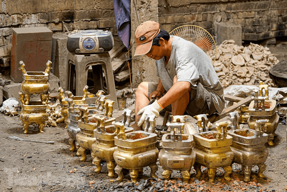 Legend has it that the bronze casting profession in Phuoc Kieu was passed down from a person named Duong Tien Hien who migrated from Thanh Hoa. Over many generations,bronze casting has become an indispensable part of the lives of people here. Bronze casting products from Phuoc Kieu not only serve domestic needs but are also exported to many countries around the world.