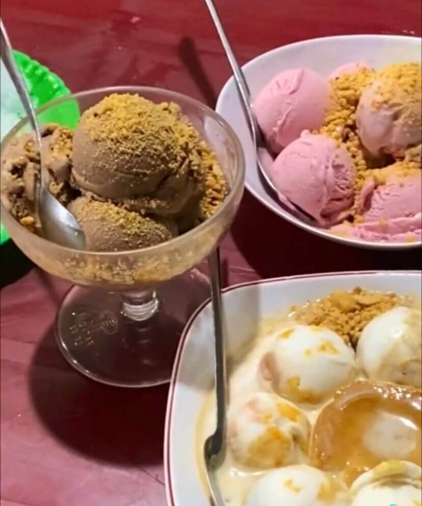 Người bạn cùng chuyến đi với tôi dẫn đến một quán kem có tên là Duy Tân nằm ở Bạch Đằng,phải nói là kem ở đây siêu ngon,béo ngậy. Đặt biệt kem nhãn trộn plan là best seller ở đây luôn í. Kem có nhãn ở bên trong thêm đậu phộng,sữa dằm lên và trộn đều ăn vào béo béo ngon lắm luôn.