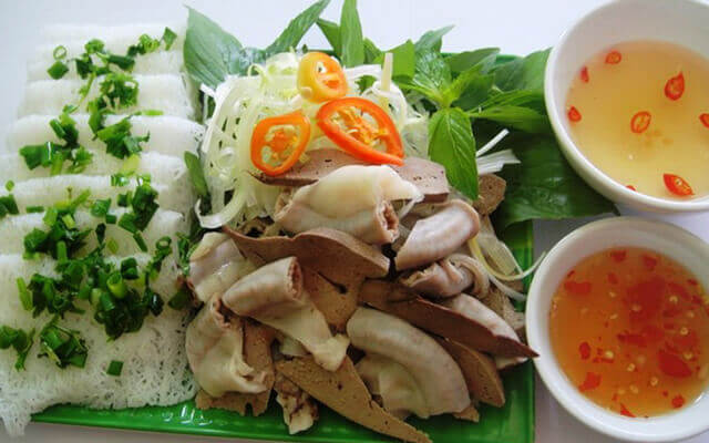 Nếu có dịp đến xứ Nẫu mà bạn không thưởng thức bánh hỏi lòng heo – đặc sản Phú Yên thì quả thực thiếu sót. Nghe tên món ăn có vẻ lạ lẫm nhưng khi đã thưởng thức thì ai cũng phải gật đầu khen ngợi. 4 thành phần chính của món ăn này là: lòng heo,bánh hỏi,rau sống và nước chấm. Bánh hỏi có độ dẻo và giòn,không bị quá dai. Lòng heo được lựa chọn tươi ngon nhất. Rau sống tươi và đủ gia vị. Tất cả hòa quyện cùng nước mắm đậm đà,chua cay khiến hương vị của món ăn trở nên đặc trưng và độc đáo.