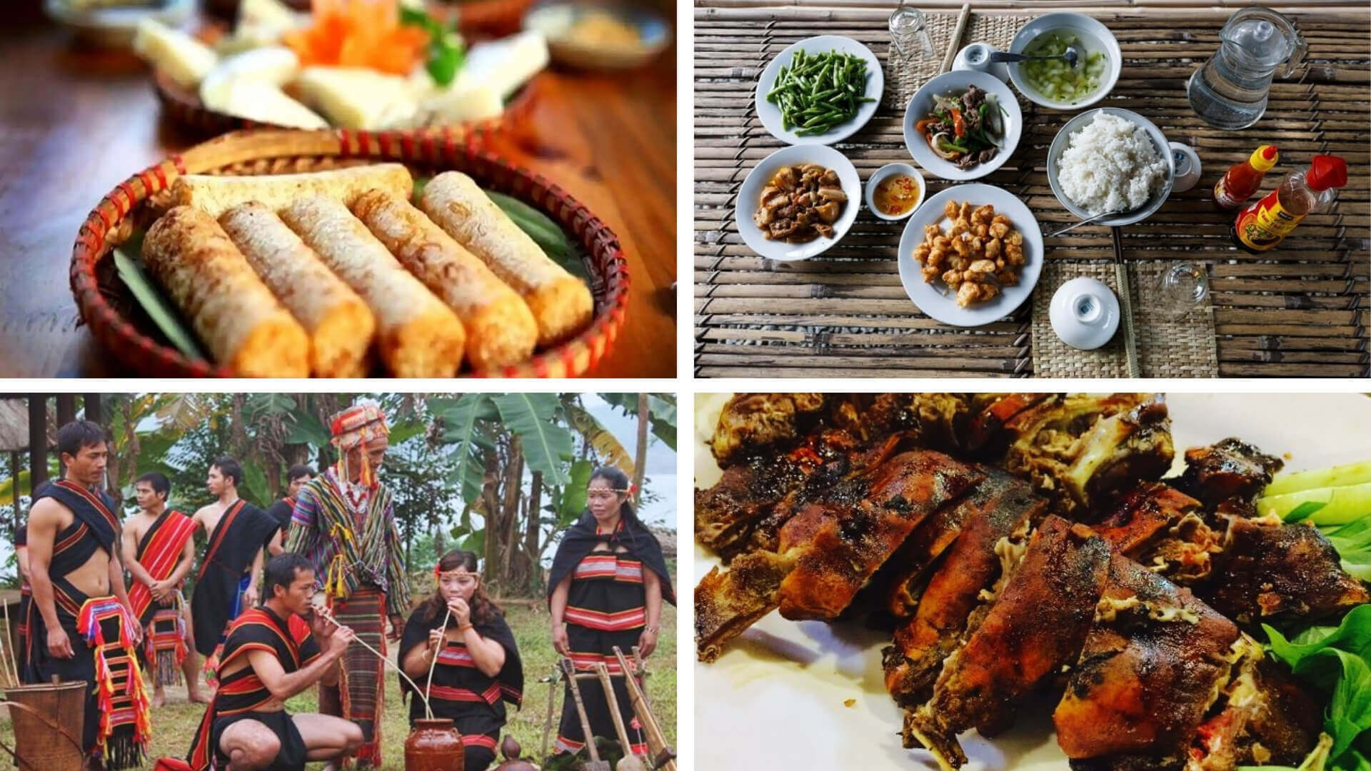 Một số món ăn đặc trưng tại đây nhất định phải kể đến là cơm lam,thịt lợn rừng và gà rừng được tẩm ướp gia vị độc đáo rồi nướng trên than hồng,tạo nên hương vị độc đáo. Ngoài ra,rau nhíp xào,đọt mây nướng cùng với rượu cần cay nồng cũng là những lựa chọn tuyệt vời mà bạn nên thử.