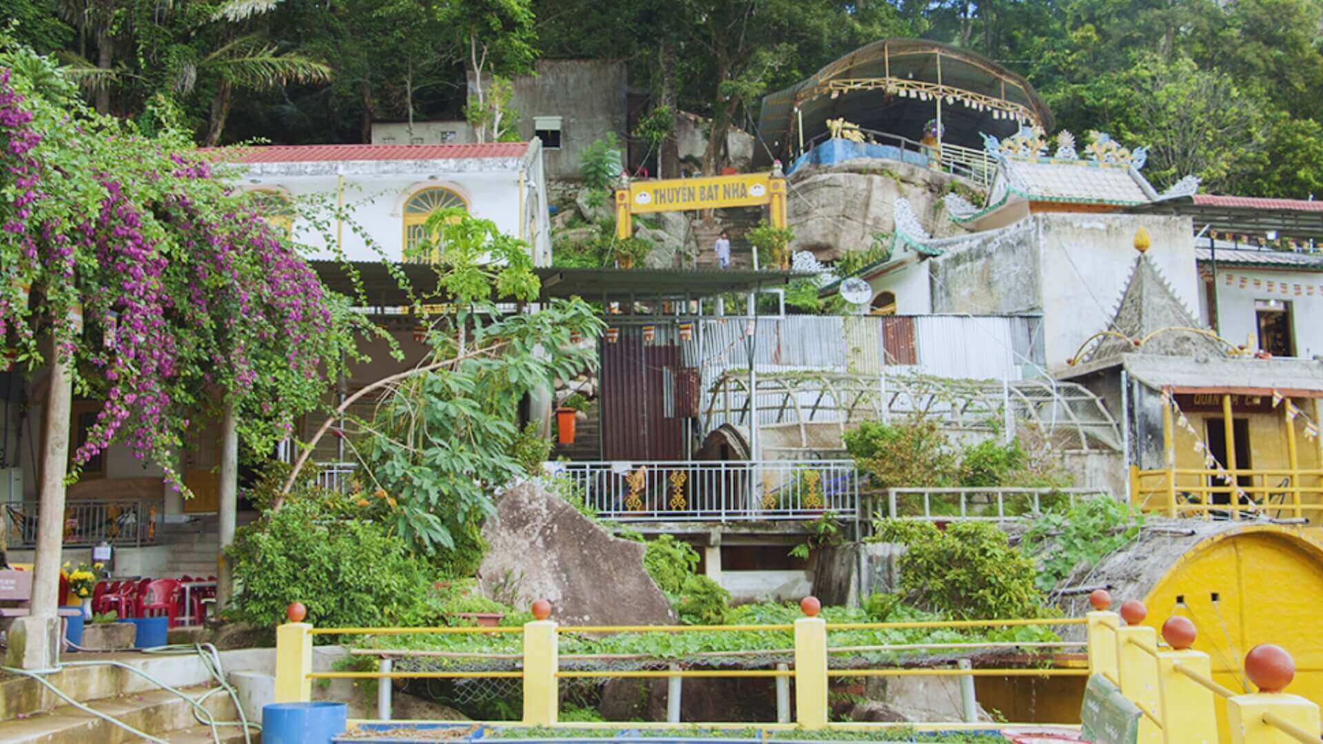 Trước cửa hang,khi men theo bậc đá đi xuống,bạn sẽ bắt gặp một gian nhà dành để tiếp khách,phía sau chính điện là khu nhà bếp luôn đầy đủ lương thực,cho phép khách hành hương tự nấu nướng trong thời gian lưu lại thăm chùa.