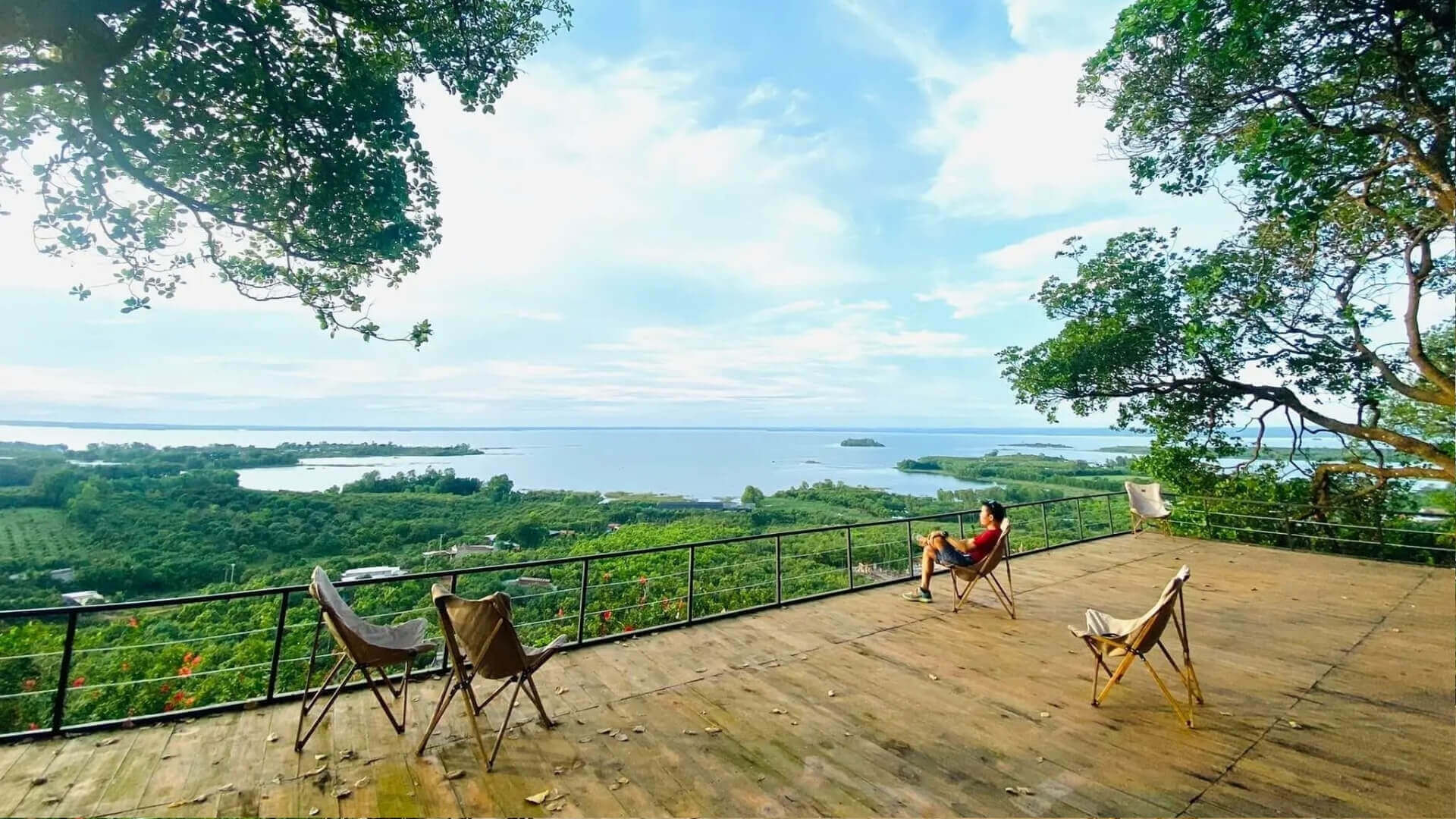 Điểm thu hút nhất của Tropical Eglamping chính là khung cảnh ngoạn mục nhìn ra hồ Trị An rộng lớn và rừng xanh bát ngát phía dưới. Khác hẳn với không khí khói bụi của thành phố,nơi đây sở hữu không khí trong lành và mát mẻ nhờ làn gió nhẹ từ lòng hồ. Các bạn sẽ không khỏi yêu thích khoảnh khắc ngồi thư giãn trên ban công dưới tán cây cổ thụ,nơi họ có thể trò chuyện vui vẻ với bạn bè và người thân,đồng thời thả hồn vào vẻ đẹp thiên nhiên tuyệt vời xung quanh.