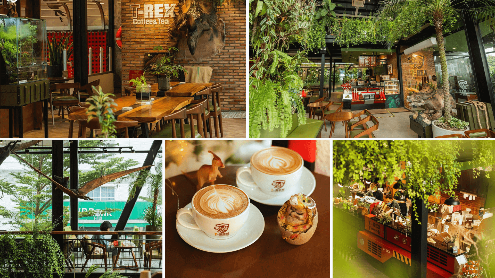 Mặc dù chỉ mới ra mắt vào cuối năm 2021,T-Rex Coffee & Tea đã nhanh chóng trở thành điểm dừng chân yêu thích của giới trẻ và ghi tên mình vào danh sách những quán cà phê đáng ghé tại Biên Hòa. Lấy cảm hứng từ chủ đề khủng long và thiên nhiên hoang dã,quán tái hiện một hệ sinh thái thời cổ đại với các mô hình khủng long chân thực đến bất ngờ.