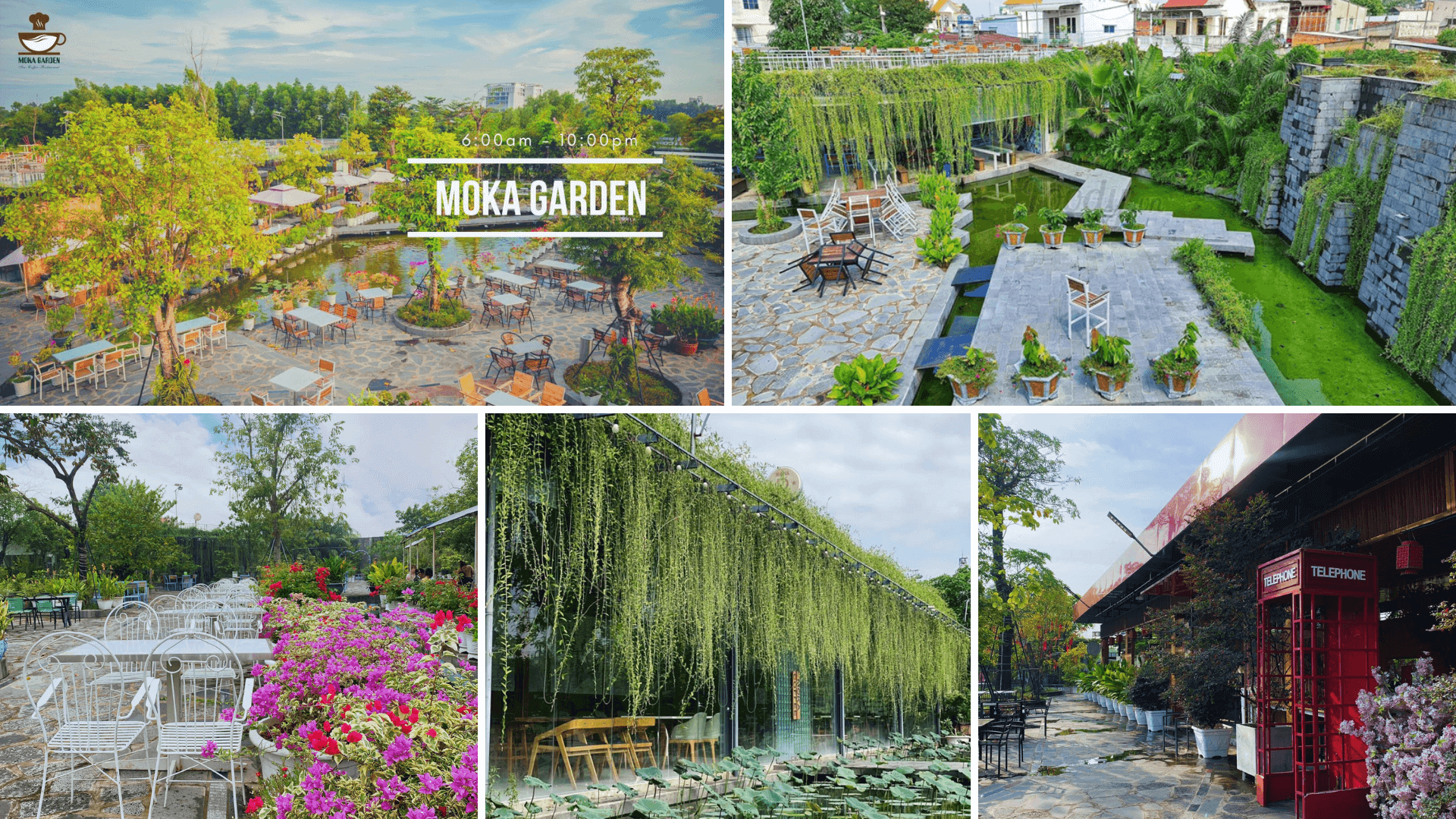 Moka Garden Coffee như một khu vườn thiên nhiên rộng lớn,với diện tích lên tới 5000m2,là điểm đến lý tưởng cho những ai muốn tận hưởng không gian xanh mát,ngập tràn cây cỏ và hoa lá. Nổi bật tại đây là những thác nước nhân tạo,cầu Seoul lấp lánh và hồ sen thơ mộng,tạo nên một không gian đầy lãng mạn và nhẹ nhàng.