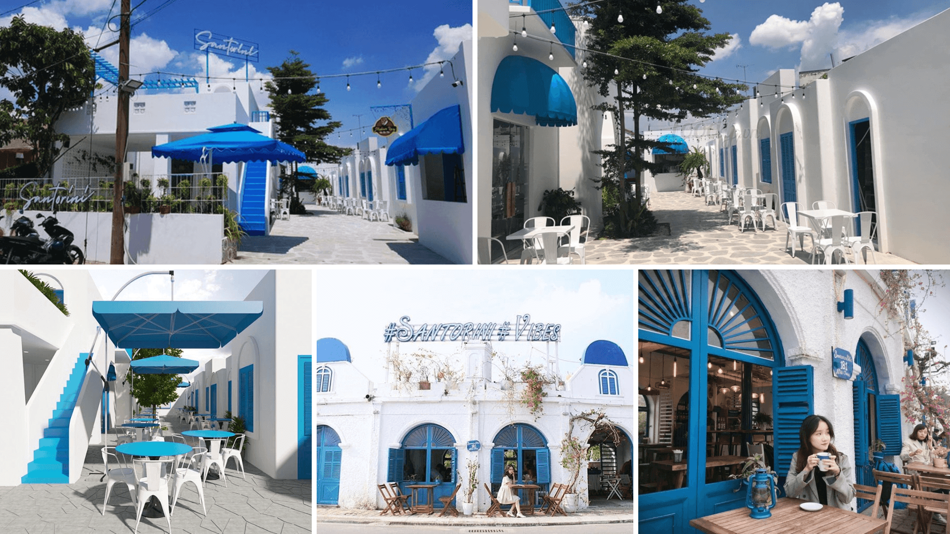 Bên ngoài,tường quán được sơn màu trắng tinh khôi,kết hợp hài hòa với cửa sổ và cánh cửa màu xanh da trời nổi bật. Nội thất bên trong cũng giữ phong cách chủ đạo với bộ bàn ghế phối màu xanh - trắng đầy ấn tượng. Nếu đến Santorini - Milktea & Juice Tea,đừng quên chuẩn bị cho mình một bộ trang phục "Summer Vibe" thật xinh đẹp và nổi bật,để thỏa sức check-in và sống ảo trong không gian tuyệt vời này.