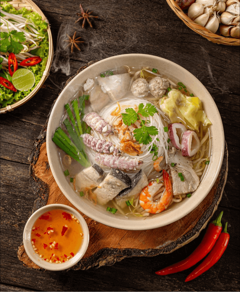 For those who prefer their noodles without broth,the dry version of Hu Tieu My Tho is served with the same array of toppings,but with a rich,savory sauce instead of soup. This version allows the flavors of the noodles and toppings to shine through more distinctly.