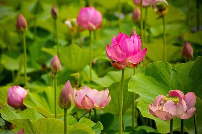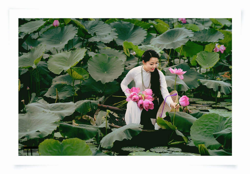 Đến với Đồng Tháp Mười bạn sẽ được ngồi trên thuyền trôi chầm chậm giữa hồ sen rộng lớn. Thuyền đến đâu bạn có thể thưởng hoa,hái đài sen đến đó,các lá sen xanh mướt sẽ chen chúc nhau chào đón bạn. Và hãy nhớ lưu lại khoảnh khắc tuyệt vời ông mặt trời này nhé.