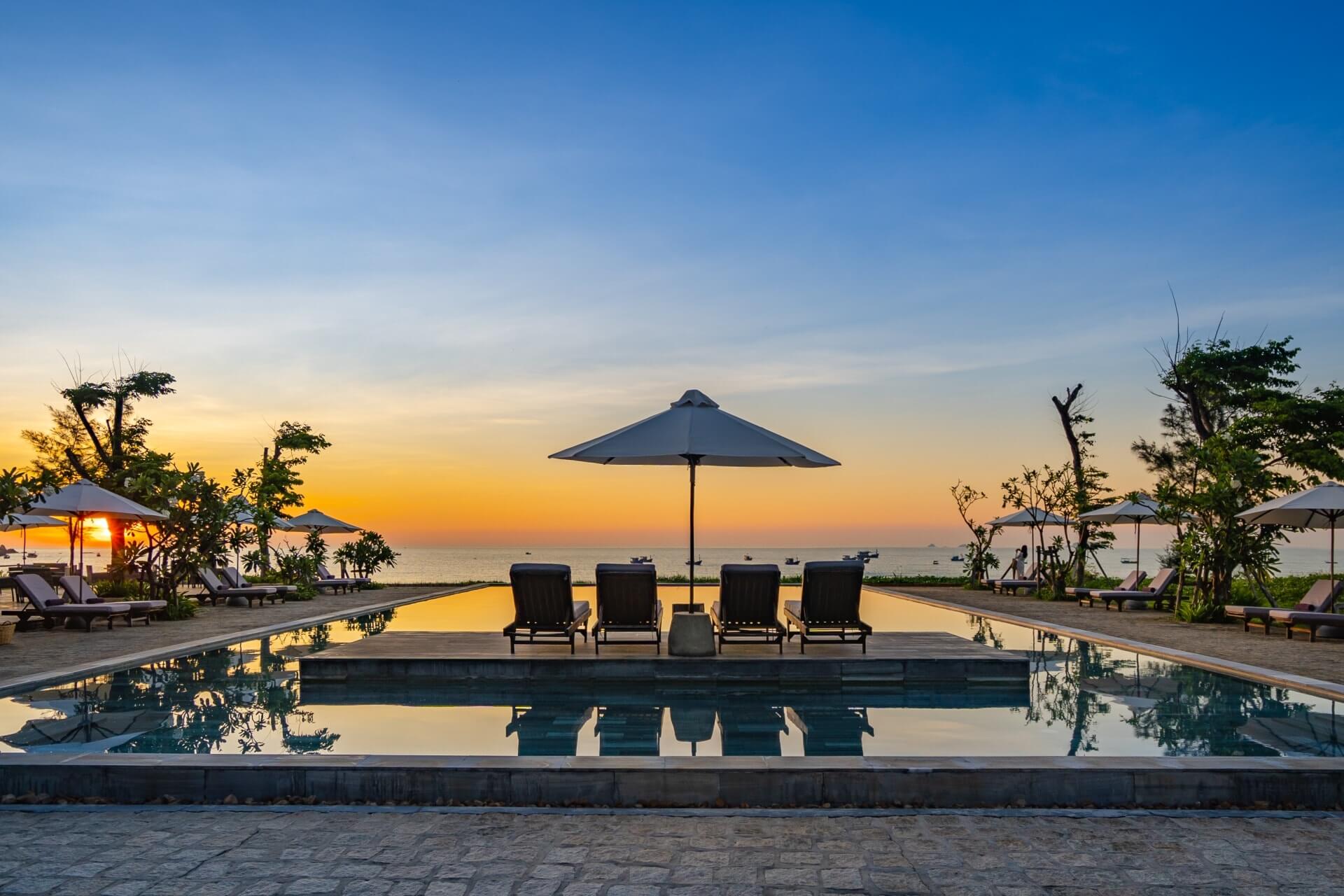 Từ ban công,bạn có thể phóng tầm mắt ra biển cả bao la. Bãi cát trắng trải dài,nước biển trong xanh màu ngọc bích,và những con sóng vỗ về bờ như một bản nhạc du dương. Cảm giác mệt mỏi,lo âu dường như tan biến hết,chỉ còn lại sự thư thái và bình yên trong tâm hồn. Bạn có thể thả mình trên chiếc ghế dài,nhắm mắt tận hưởng làn gió biển mát lạnh,hoặc đắm mình trong làn nước trong xanh của hồ bơi riêng.