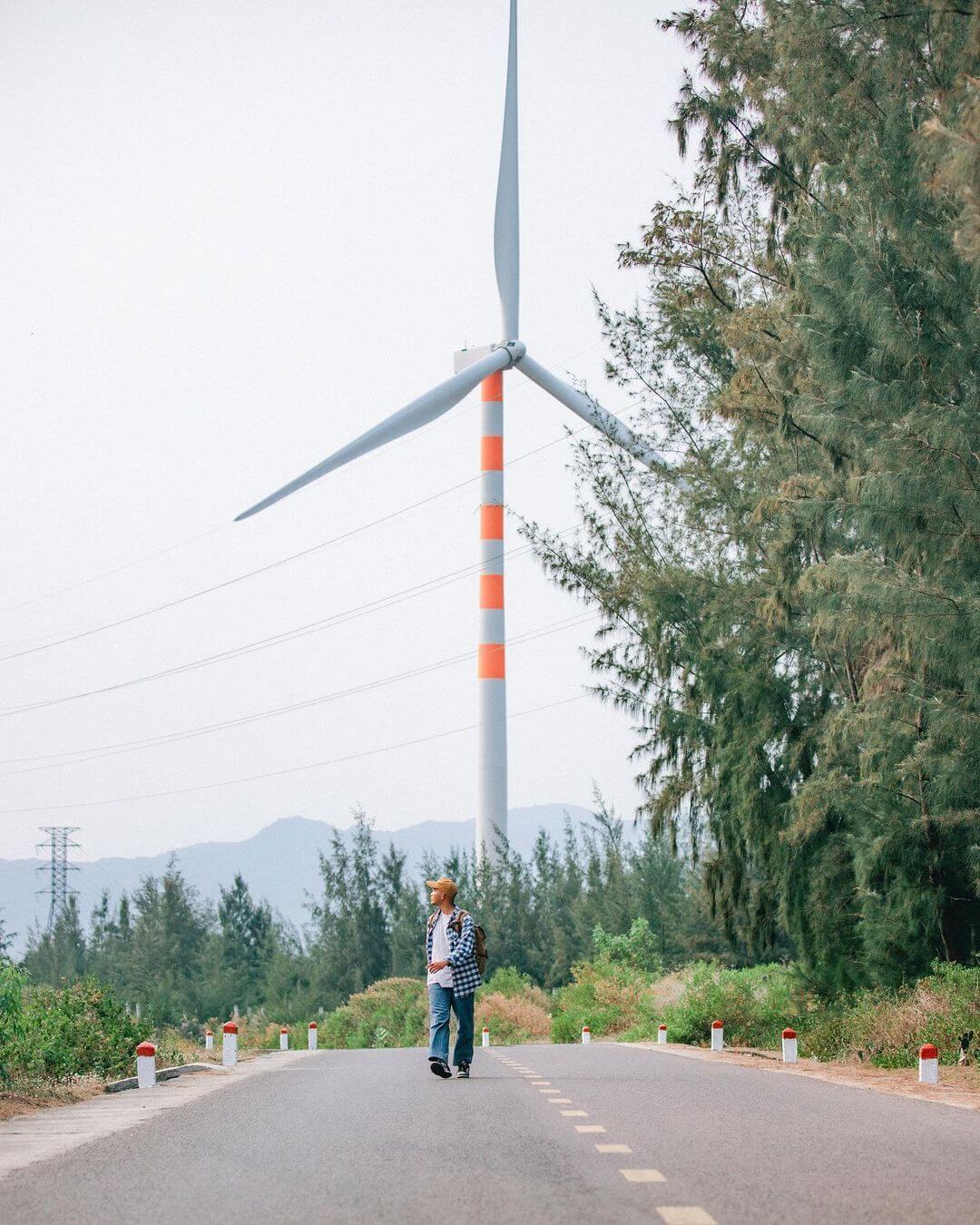 Mình bước đi trên con đường nhỏ dẫn vào cánh đồng,cảm nhận gió thổi mạnh mẽ qua từng lọn tóc. Âm thanh của gió hòa cùng tiếng quay của các cánh quạt tạo nên một bản nhạc thiên nhiên đầy sức sống. Mỗi cột tua-bin đều cao khoảng 80m,với những cánh quạt dài tới 55m,quay chậm rãi nhưng mạnh mẽ trong gió. Mình không thể ngừng chụp ảnh,cố gắng ghi lại vẻ đẹp và sự ấn tượng của cảnh tượng này.