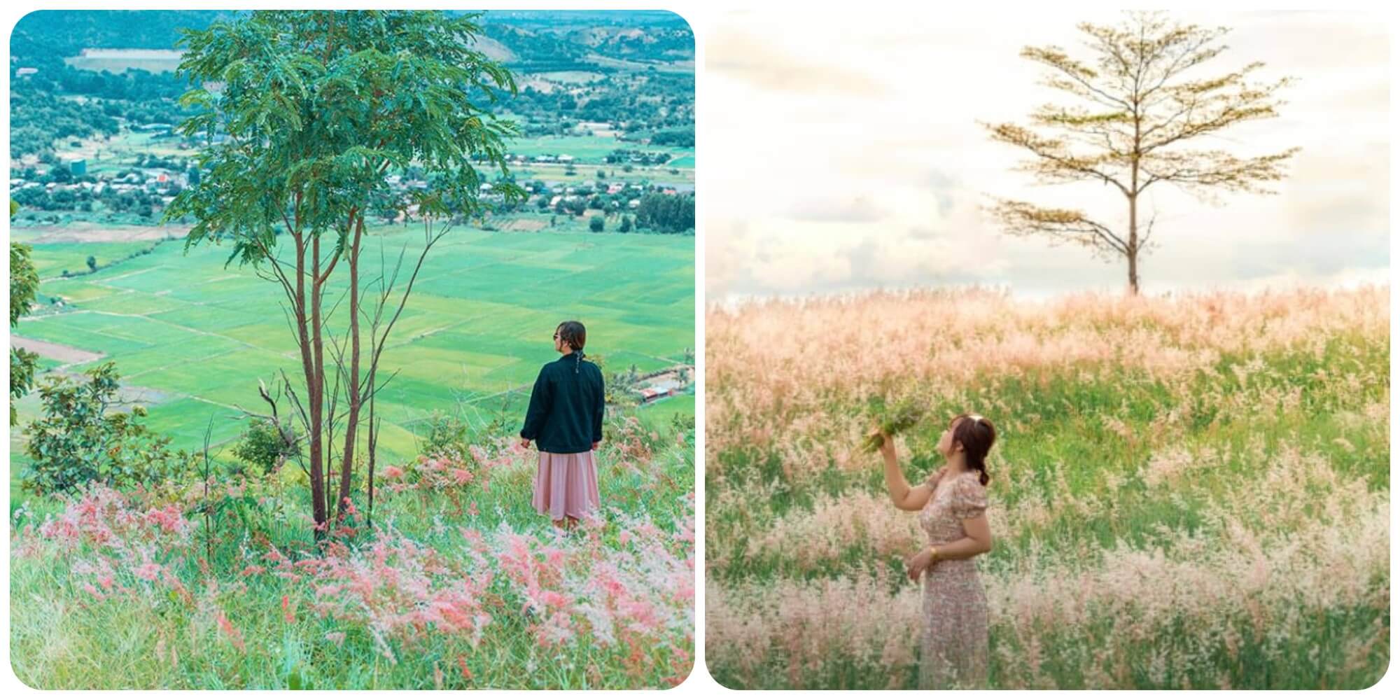 Chuyến đi khoảng 45 phút,nhưng dường như ngắn lại bởi cảnh đẹp hai bên đường. Từ xa,tôi đã nhìn thấy đồi cỏ hiện lên mờ ảo trong làn sương sớm,trông như một tấm thảm hồng mong manh trải dài trên sườn đồi thoai thoải. Cảnh tượng ấy khiến lòng tôi nôn nao,mong ngóng được chạm vào vẻ đẹp đầy cuốn hút và thơ mộng ấy. Khung cảnh này nhìn qua rất giống Đà Lạt nhưng vẫn mang một nét gì đó rất riêng của Gia Lai,đây cũng là một trong những lý do khiến nơi đây thu hút hàng trăm du khách đến tham quan và chụp ảnh.