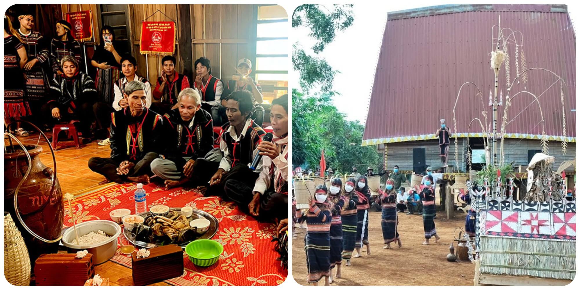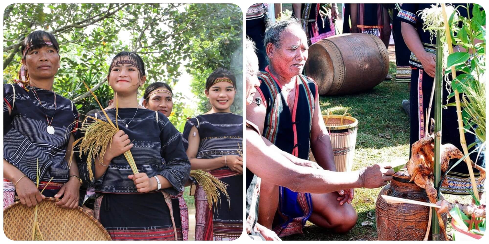 Lễ mừng lúa mới được tổ chức rất thiêng liêng và trang trọng tại nhà rông - nơi diễn ra những hoạt động và sự kiện quan trọng của bản làng,để cộng đồng cùng tạ ơn đất trời và hưởng thụ thành quả lao động trong một năm. Người dân chuẩn bị kỹ lưỡng từ những phần lễ vật quý giá nhất,con heo mập ú,đôi gà,ghè rượu cần sóng sánh với cùng những hạt cốm xanh mướt thơm lừng được làm từ chính những hạt lúa mới vừa hái. Không khí lễ hội ngập tràn tiếng cười nói rộn rã,tiếng cồng chiêng vang vọng và hương thơm nồng nàn của các lễ vật,tạo nên một bức tranh sinh động về cuộc sống ấm no,hạnh phúc của người dân bản địa.